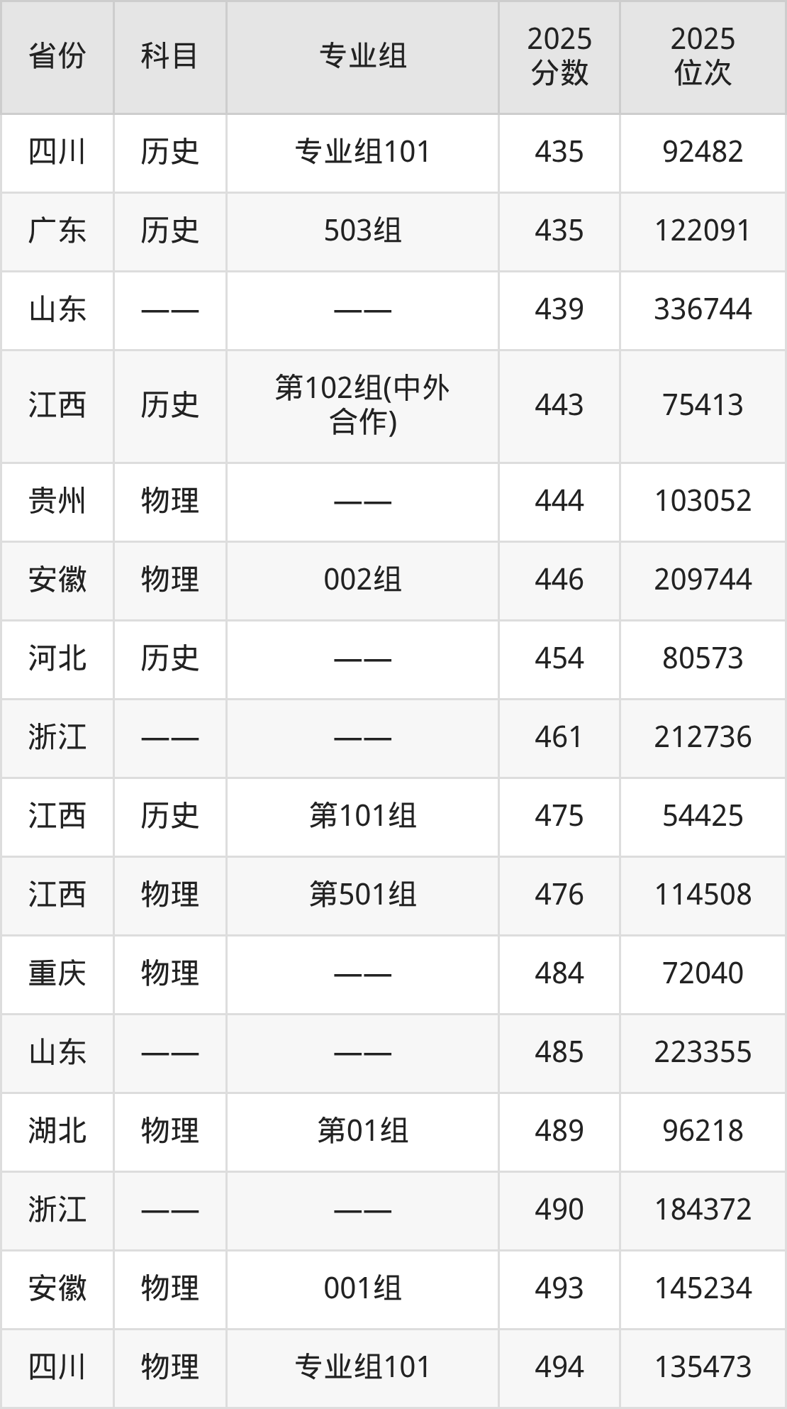 3+3地区:2025年江西职业技术大学录取最低分是439分(山东),对应的位次排名是336744名。