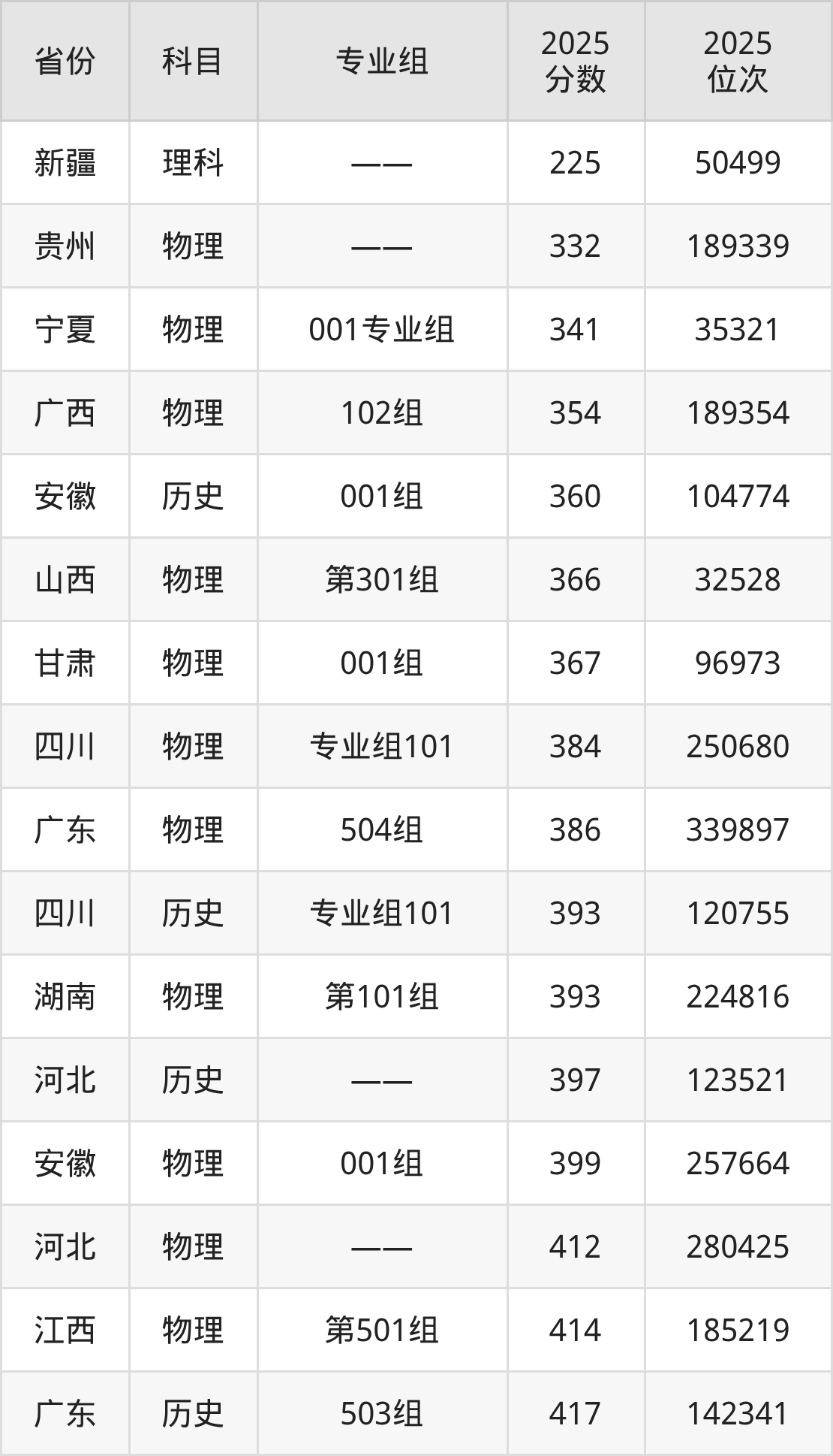 物理类:2025年福建水利电力职业技术学院录取最低分是332分(贵州),对应的位次排名是189339名。