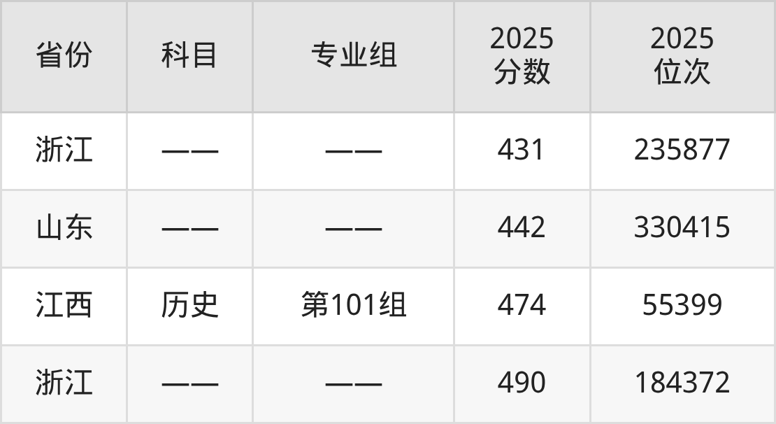 3+3地区:2025年福建水利电力职业技术学院录取最低分是431分(浙江),对应的位次排名是235877名。