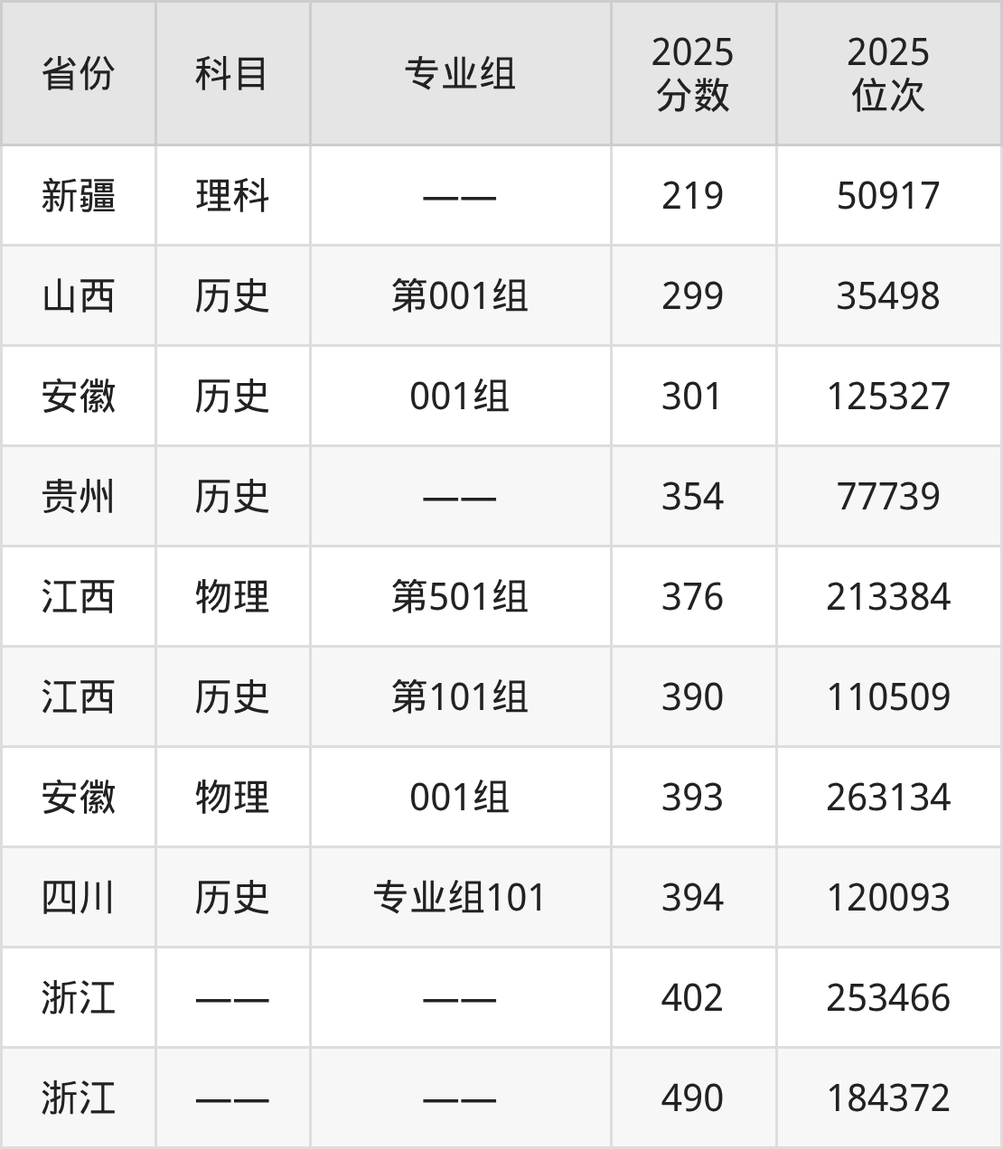 物理类:2025年嘉兴南洋职业技术学院录取最低分是376分(江西),对应的位次排名是213384名。