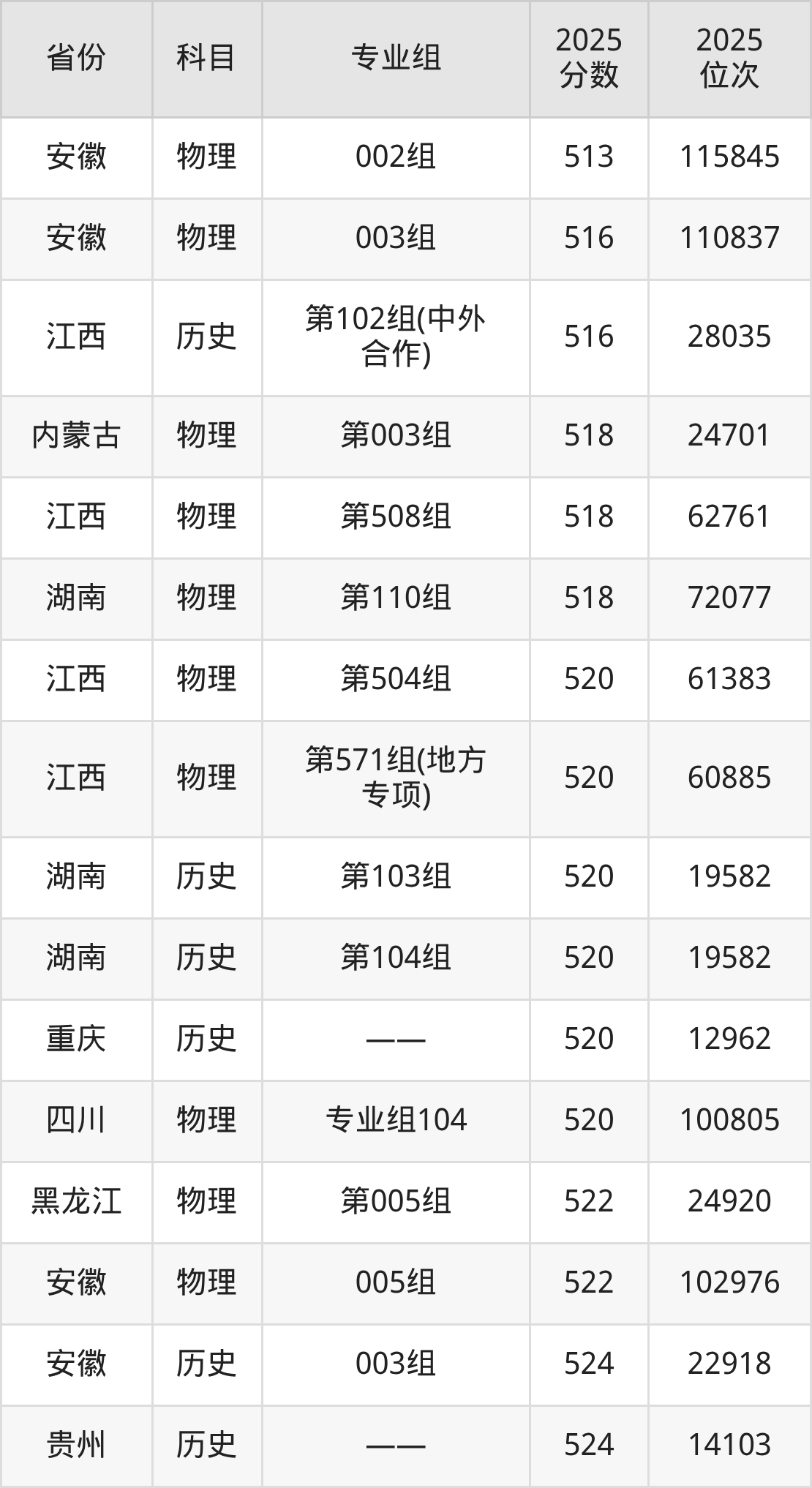 历史类:2025年江西中医药大学省内录取最低分是516分,对应的位次排名是28035名。建议:如果2026年排名超过28035名,那么被该校录取的概率较大。