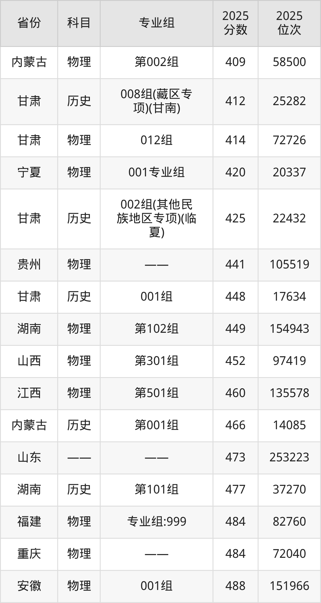 物理类:2025年甘肃林业职业技术大学录取最低分是209分(山西),对应的位次排名是60868名。