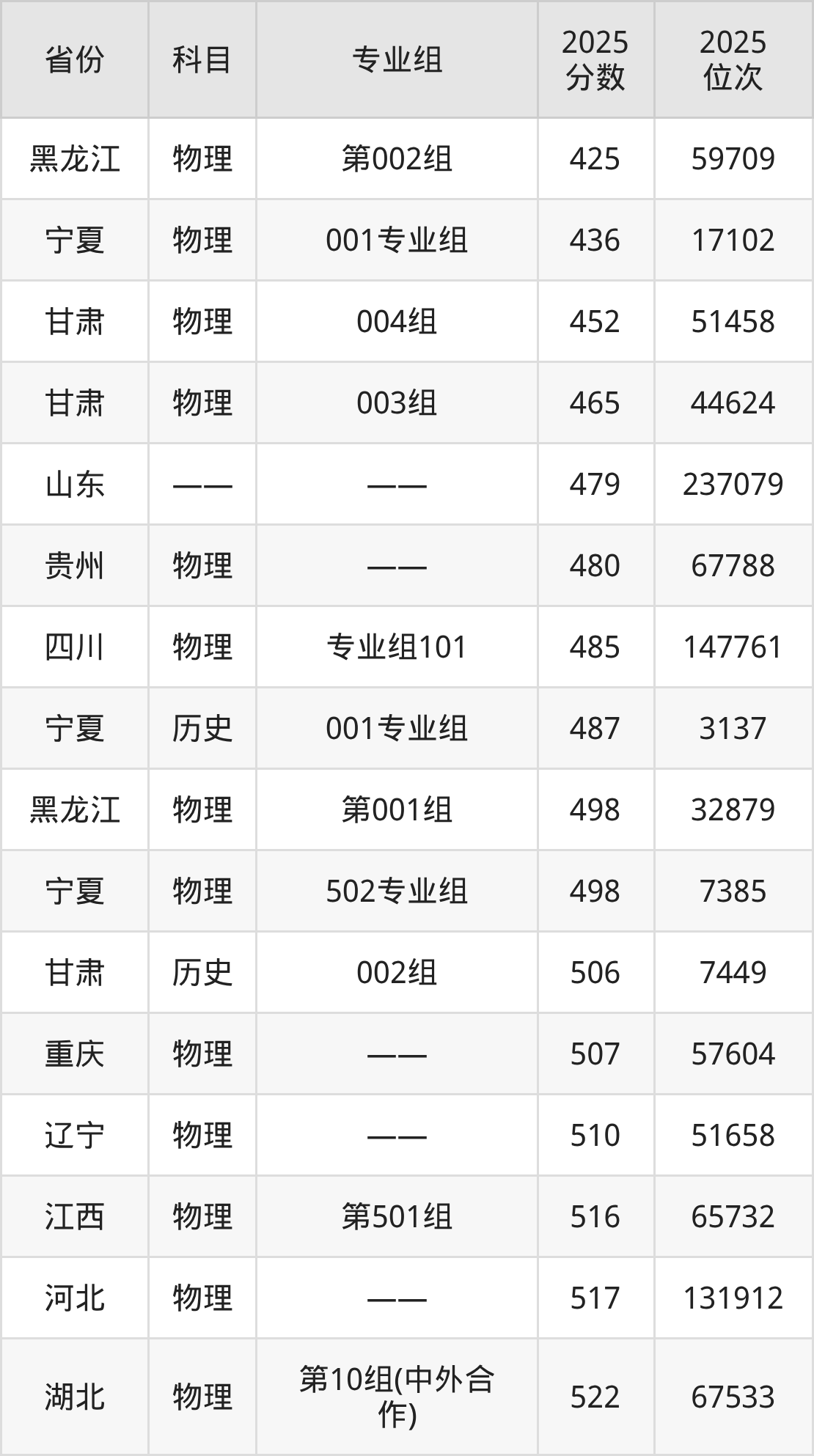 物理类:2025年湖北工业大学录取最低分是425分(黑龙江),对应的位次排名是59709名。
