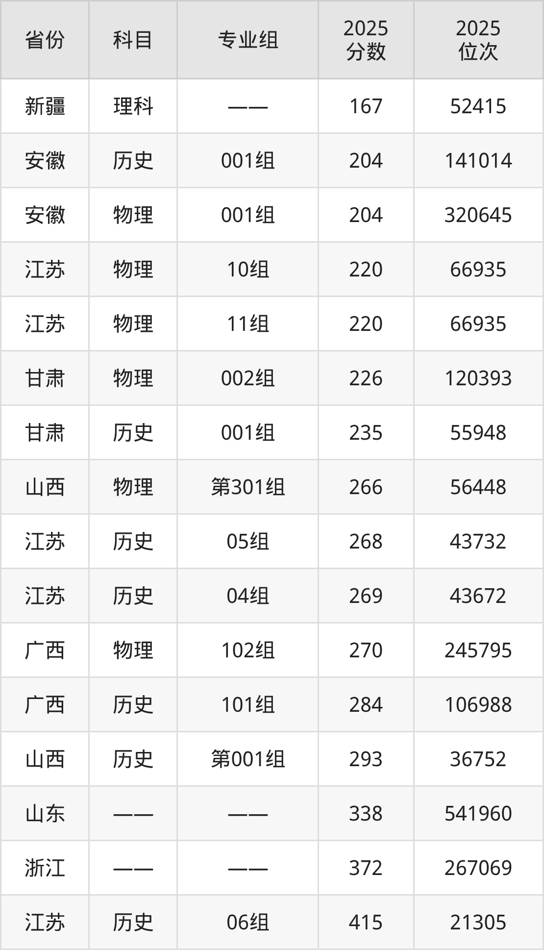 物理类:2025年钟山职业技术学院录取最低分是204分(安徽),对应的位次排名是320645名。
