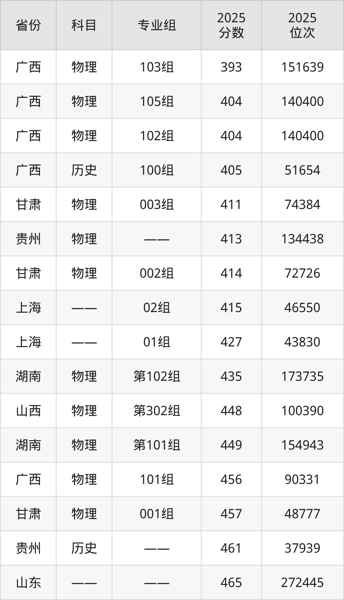 物理类:2025年温州医科大学仁济学院录取最低分是393分(广西),对应的位次排名是151639名。