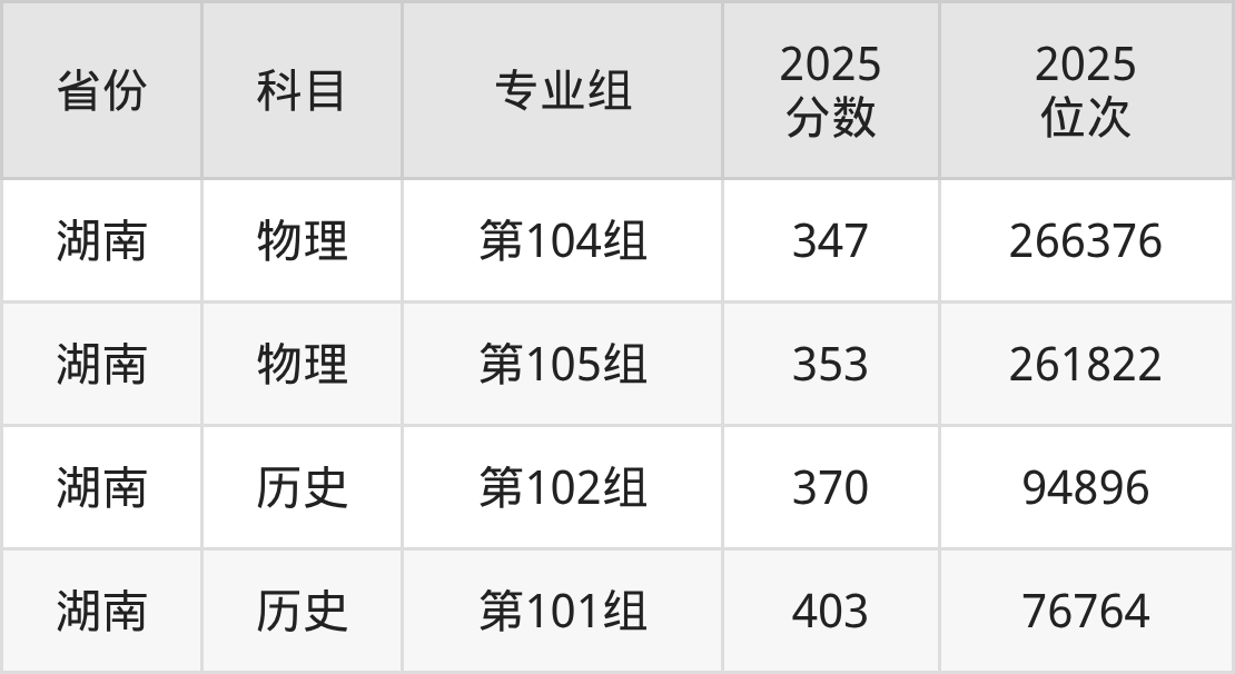物理类:2025年湖南工艺美术职业学院省内录取最低分是347分,对应的位次排名是266376名。建议:如果2026年排名超过266376名,那么被该校录取的概率较大。
