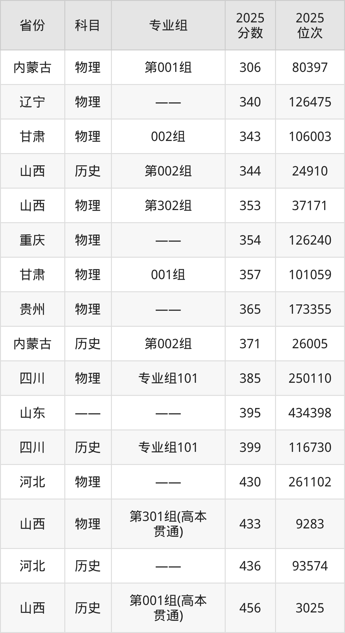 物理类:2025年山西工程职业学院录取最低分是306分(内蒙古),对应的位次排名是80397名。