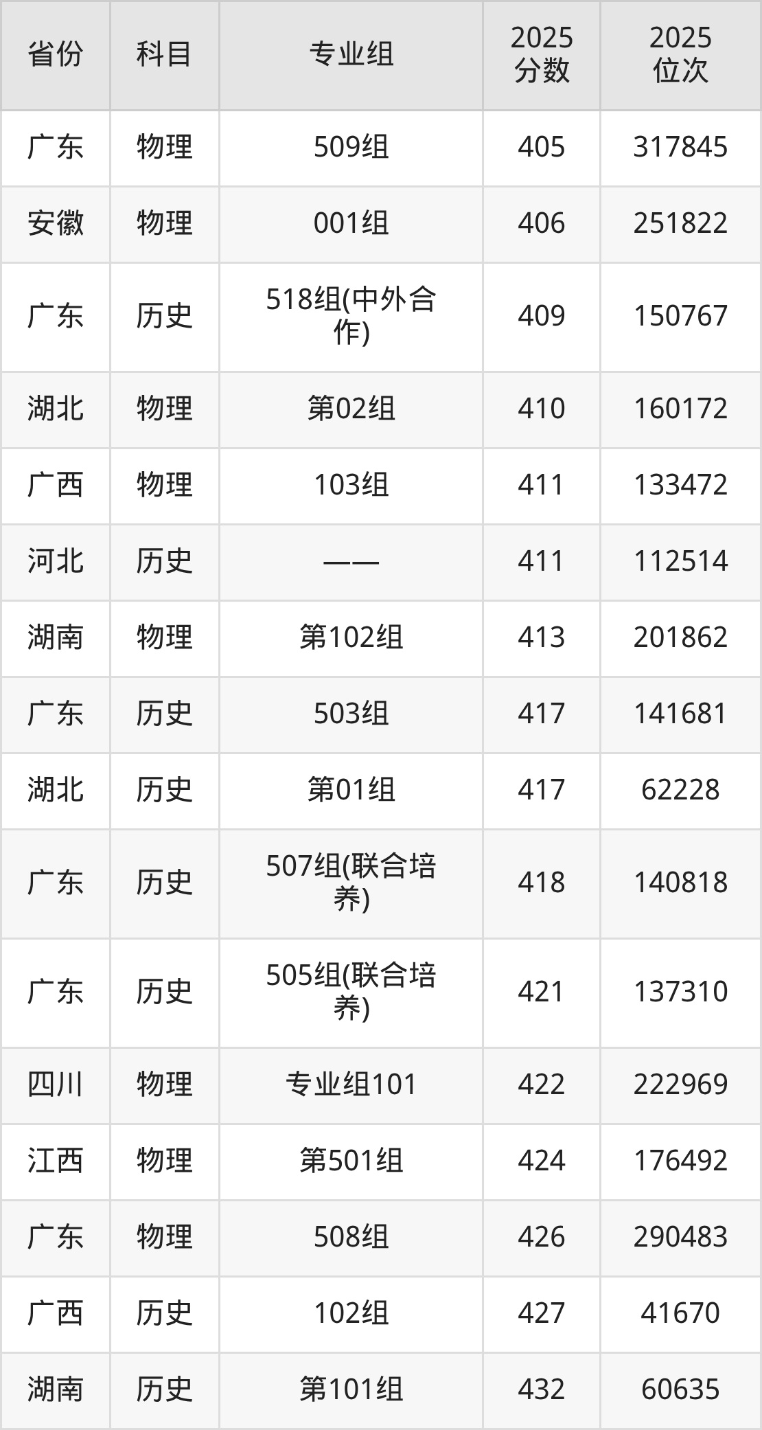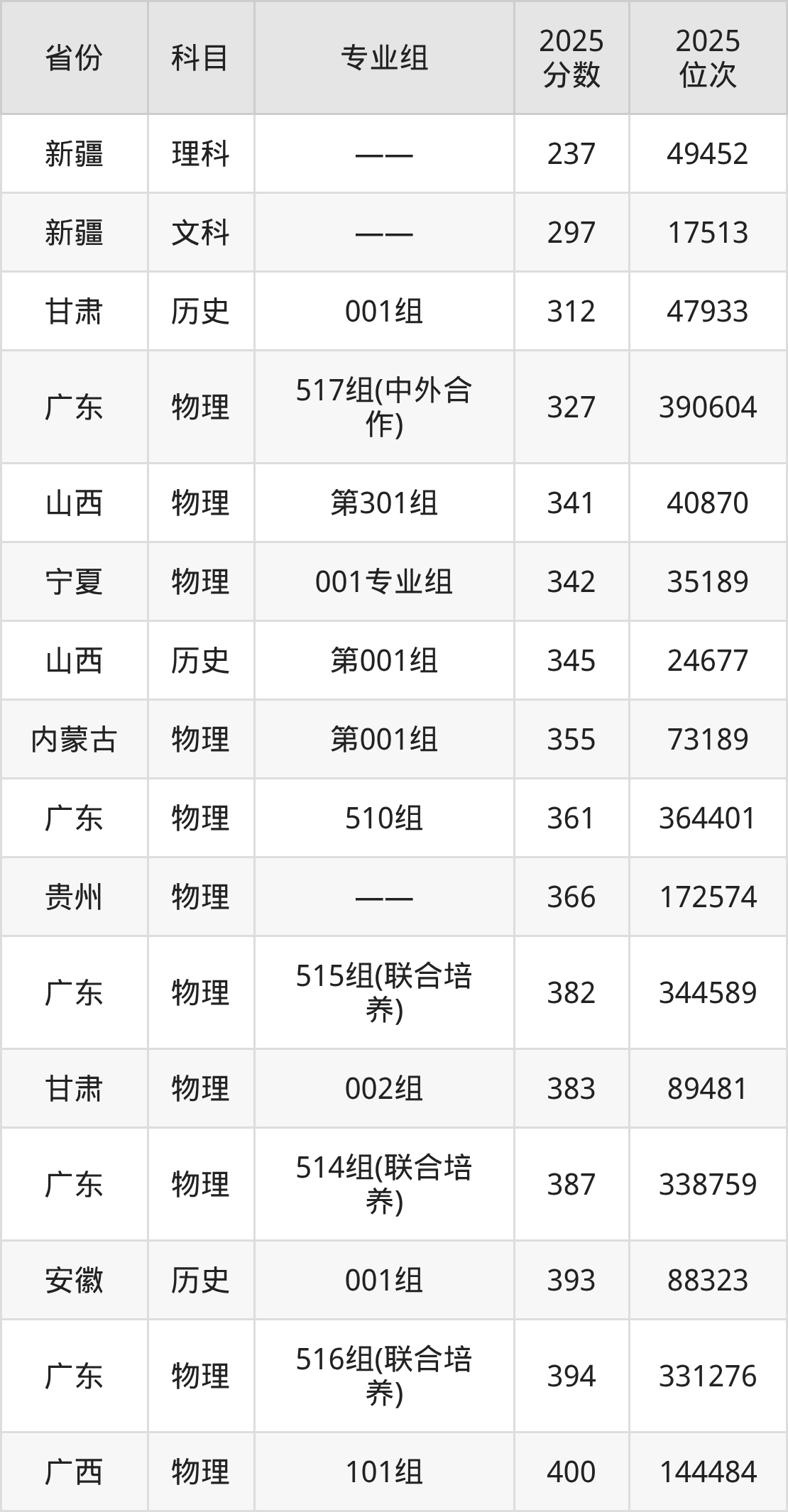 物理类:2025年广东交通职业技术学院录取最低分是341分(山西),对应的位次排名是40870名。