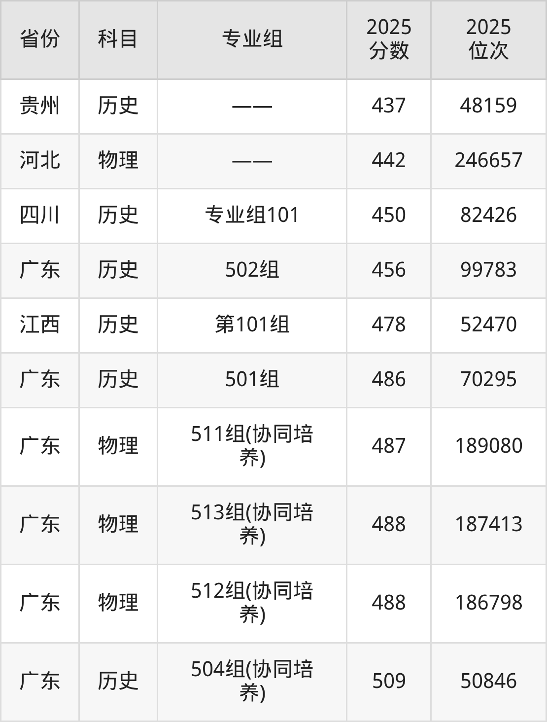 历史类:2025年广东交通职业技术学院录取最低分是312分(甘肃),对应的位次排名是47933名。
