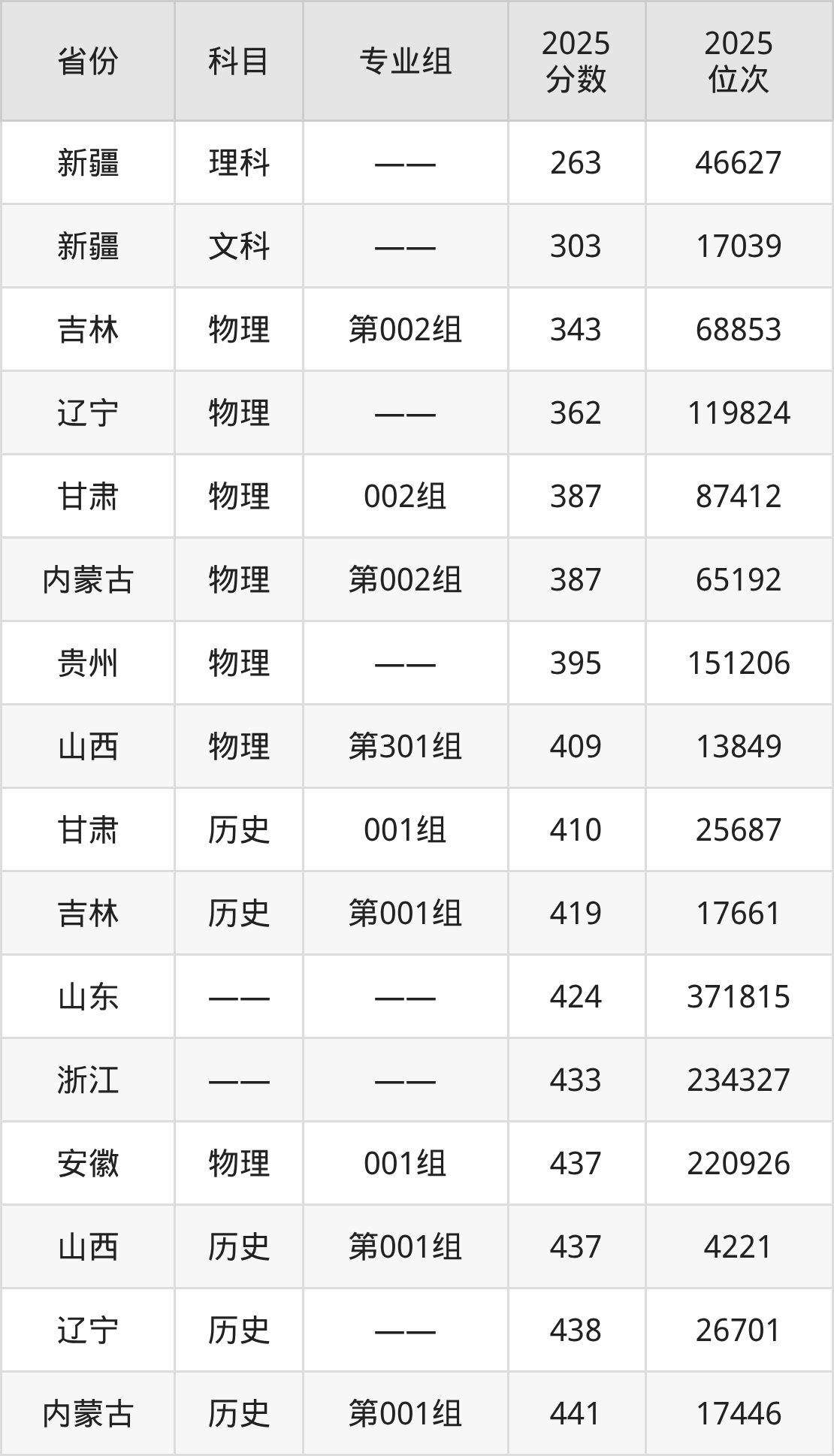 3+3地区:2025年山东中医药高等专科学校录取最低分是433分(浙江),对应的位次排名是234327名。
