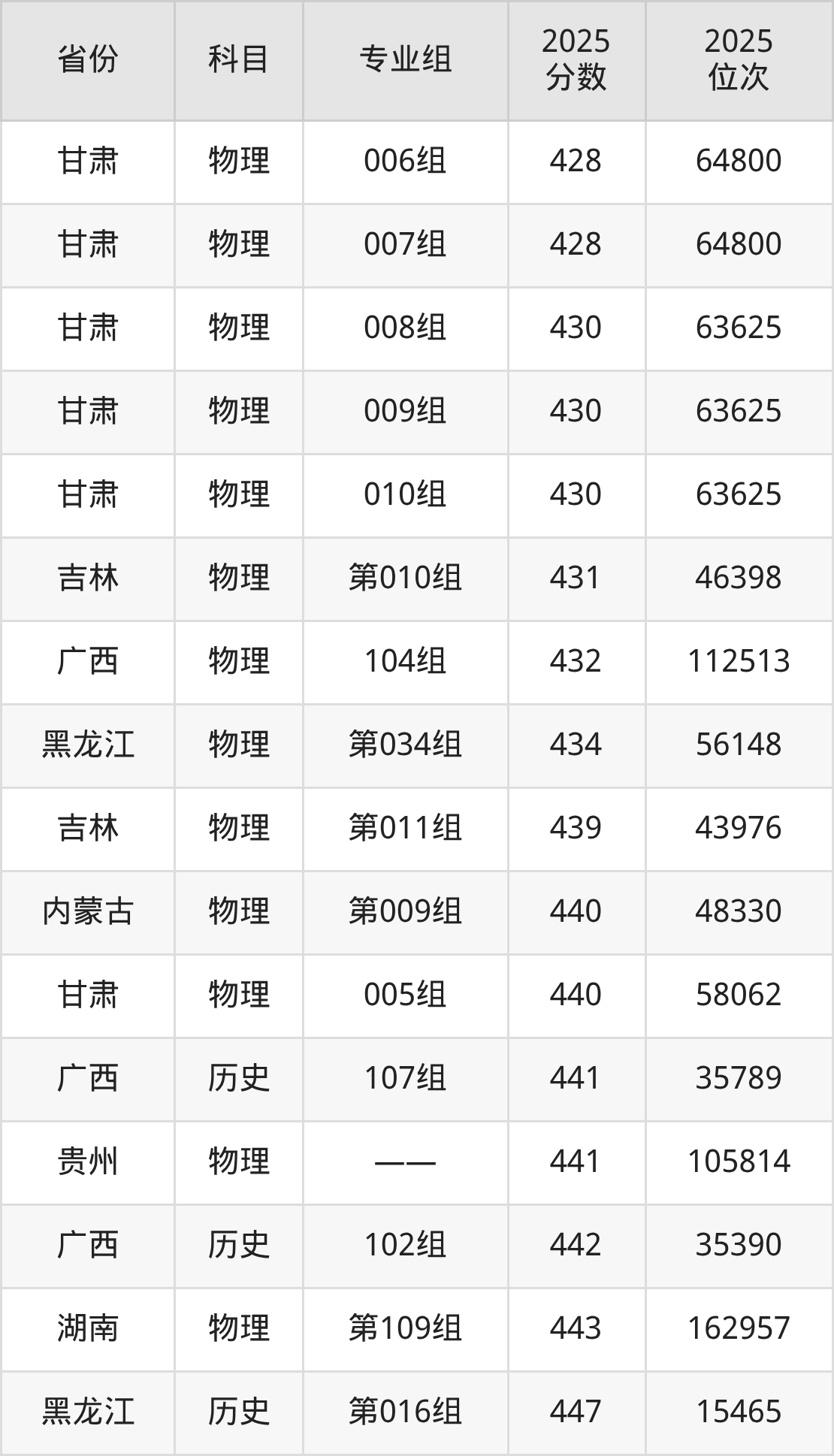 历史类:2025年大庆师范学院录取最低分是441分(广西),对应的位次排名是35789名。