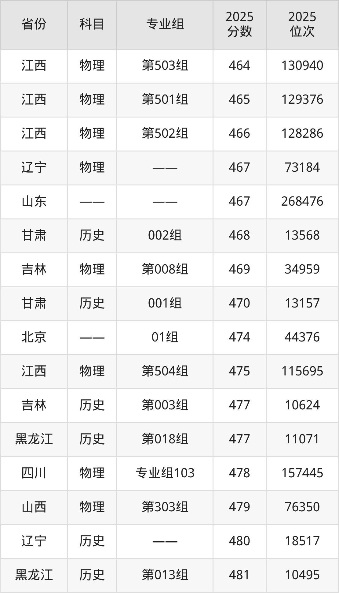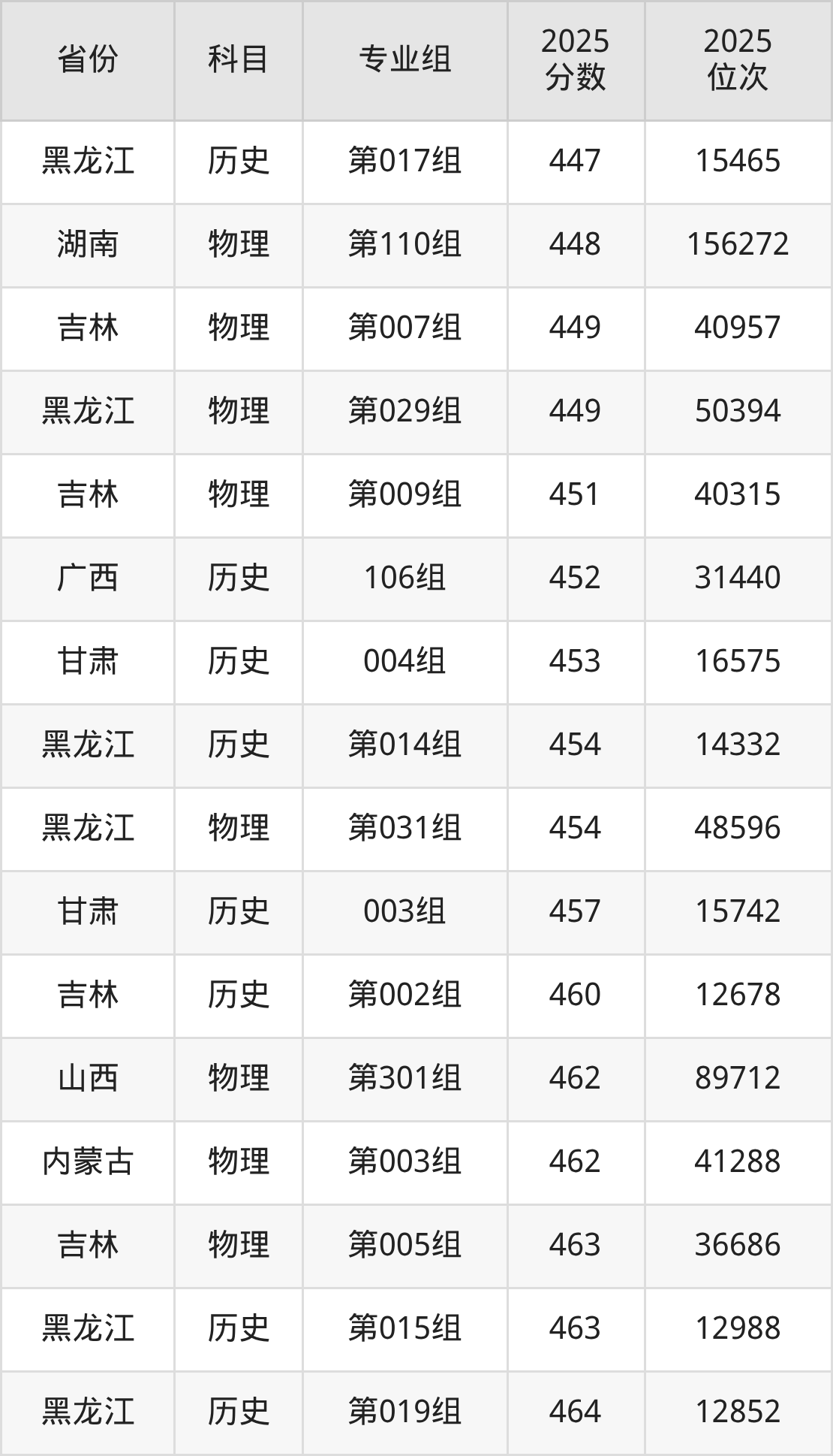 3+3地区:2025年大庆师范学院录取最低分是467分(山东),对应的位次排名是268476名。