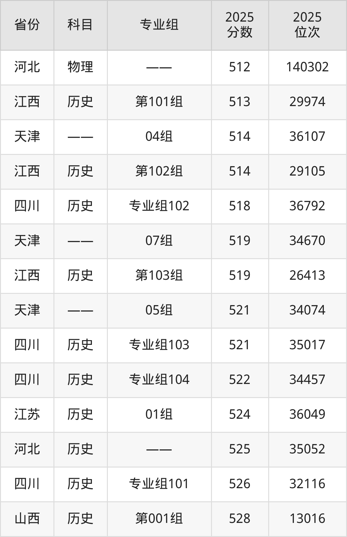 物理类:2025年大庆师范学院省内录取最低分是358分,对应的位次排名是86053名。建议:如果2026年排名超过86053名,那么被该校录取的概率较大。