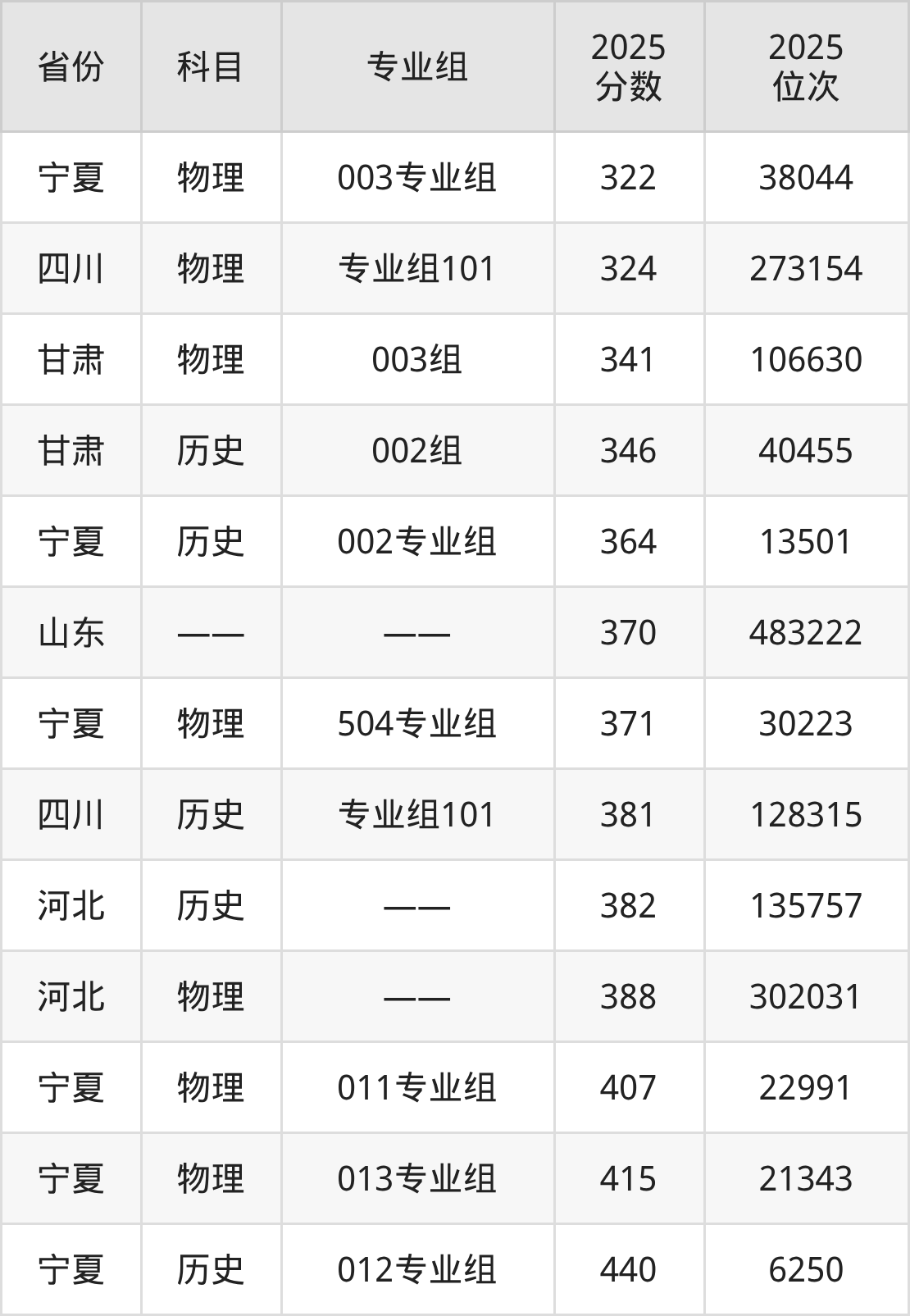 物理类:2025年宁夏工商职业技术大学录取最低分是324分(四川),对应的位次排名是273154名。