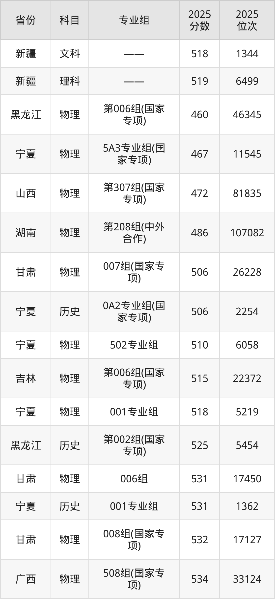 历史类:2025年中国矿业大学录取最低分是506分(宁夏),对应的位次排名是2254名。