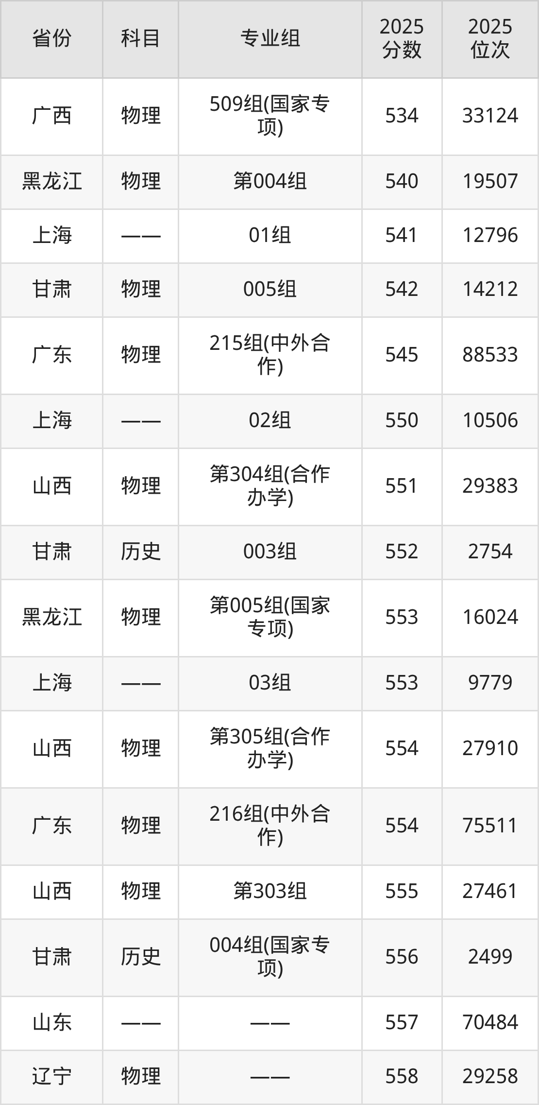 3+3地区:2025年中国矿业大学录取最低分是541分(上海),对应的位次排名是12796名。