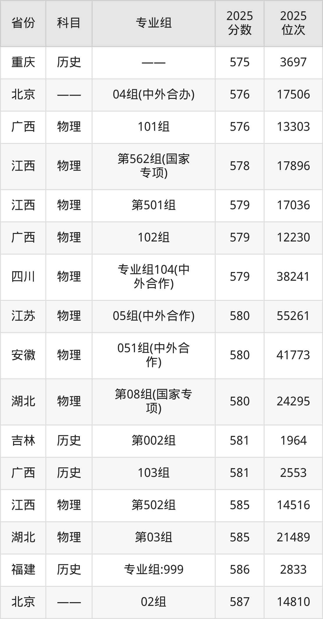 物理类:2025年中国矿业大学省内录取最低分是580分,对应的位次排名是55261名。建议:如果2026年排名超过55261名,那么被该校录取的概率较大。