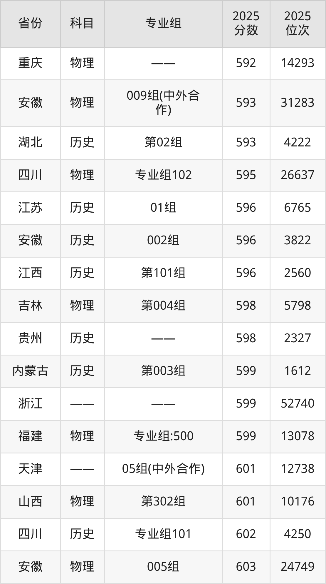 历史类:2025年中国矿业大学省内录取最低分是596分,对应的位次排名是6765名。建议:如果2026年排名超过6765名,那么被该校录取的概率较大。
