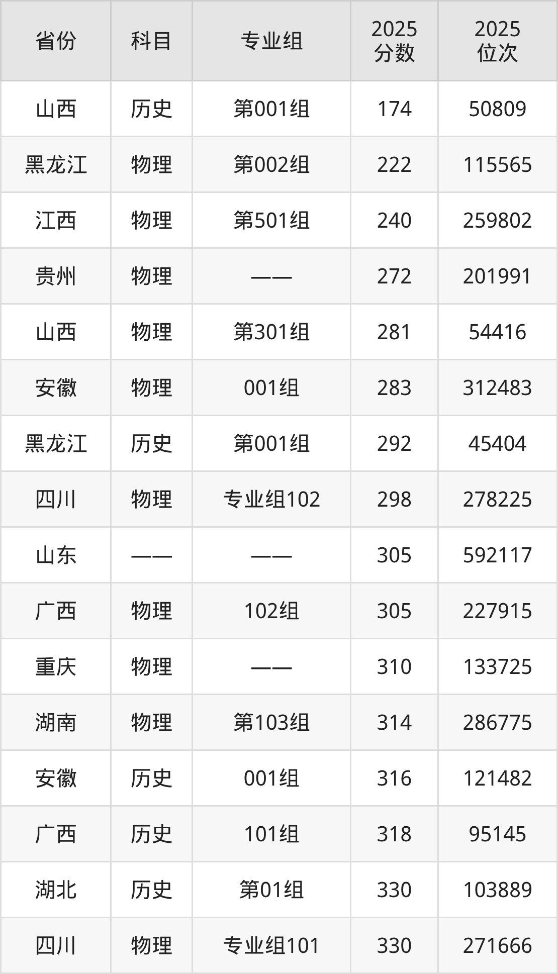 历史类:2025年梧州职业学院录取最低分是174分(山西),对应的位次排名是50809名。