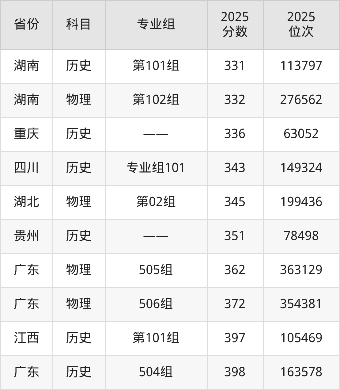 3+3地区:2025年梧州职业学院录取最低分是305分(山东),对应的位次排名是592117名。