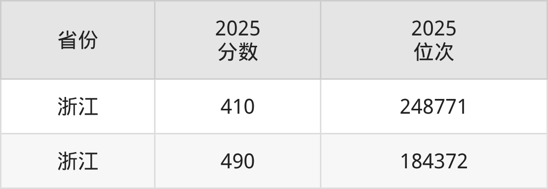 2025年浙江长征职业技术学院省内录取最低分是410分,对应的位次排名是248771名。建议:如果2026年排名超过248771名,那么被该校录取的概率较大。