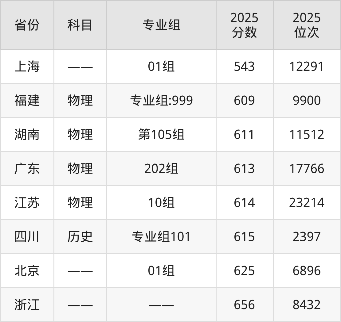 历史类:2025年中国人民公安大学录取最低分是615分(四川),对应的位次排名是2397名。