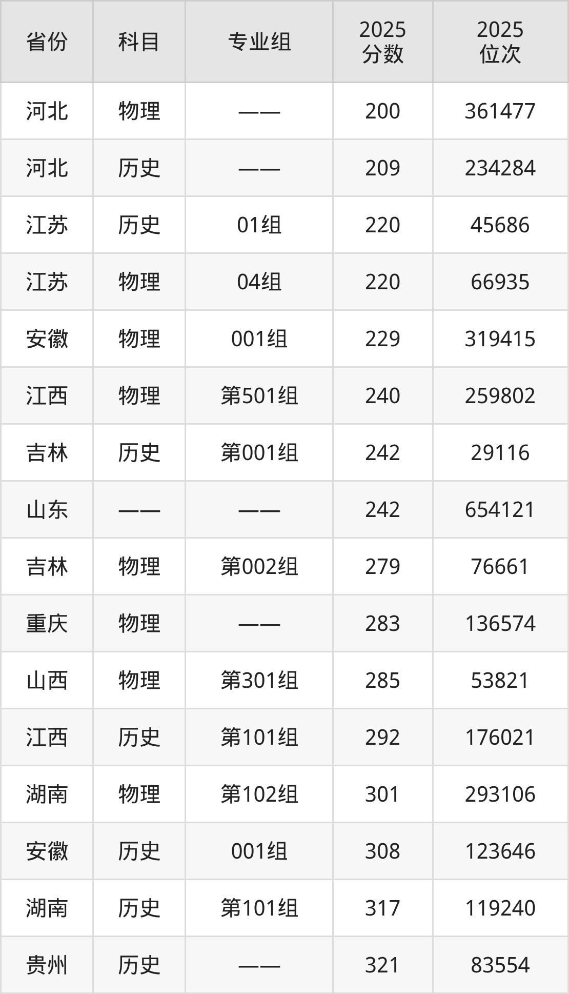 物理类:2025年江海职业技术学院录取最低分是200分(河北),对应的位次排名是361477名。