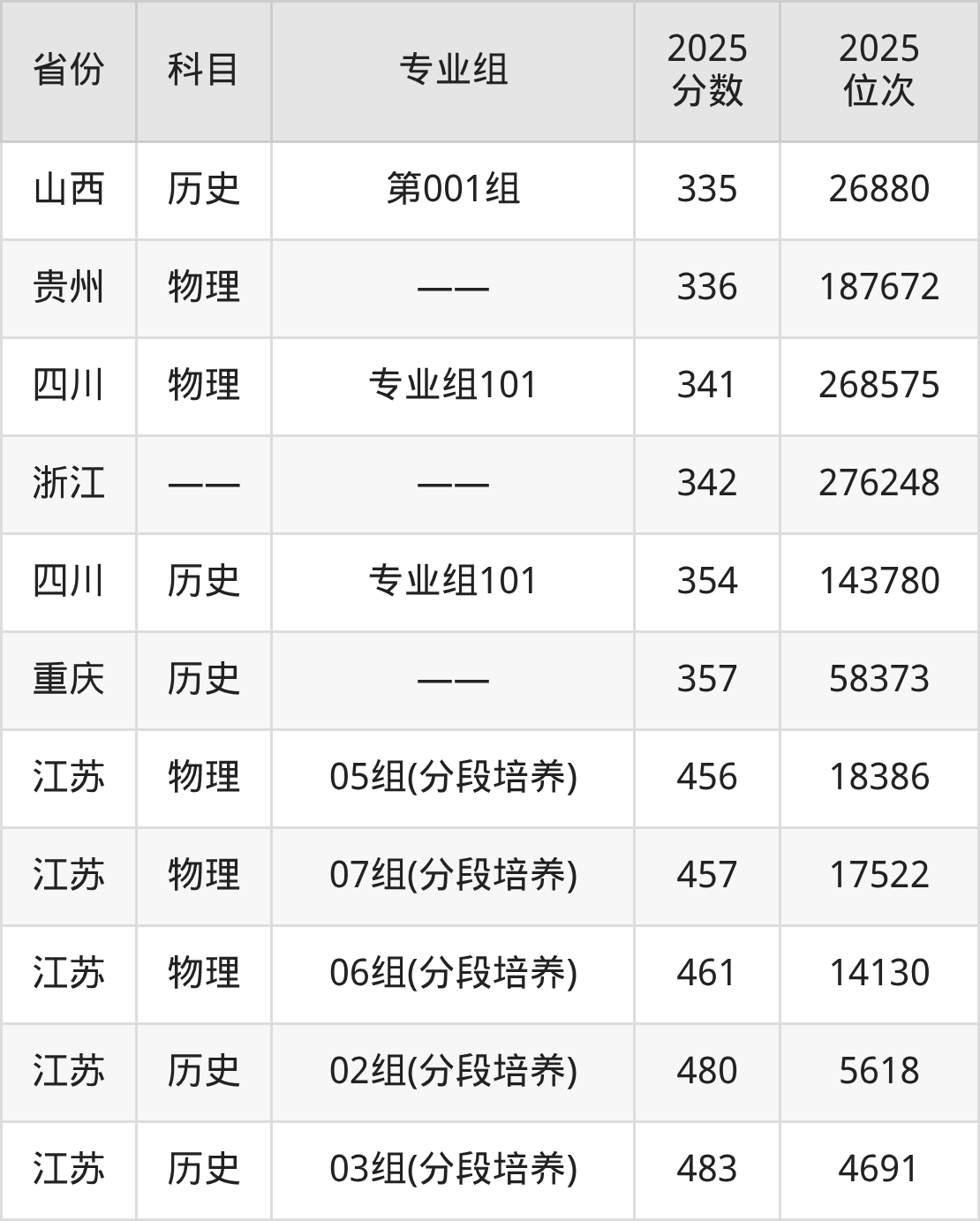 3+3地区:2025年江海职业技术学院录取最低分是242分(山东),对应的位次排名是654121名。