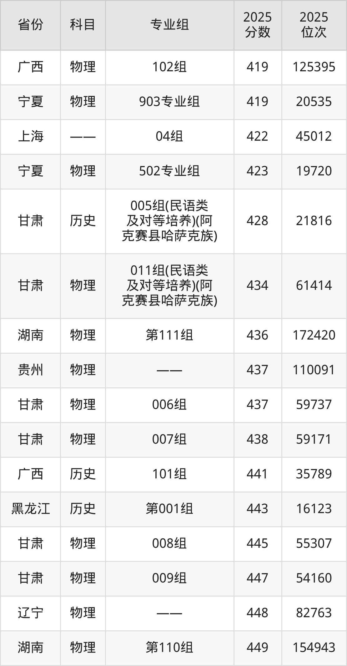 历史类:2025年伊犁师范大学录取最低分是428分(甘肃),对应的位次排名是21816名。