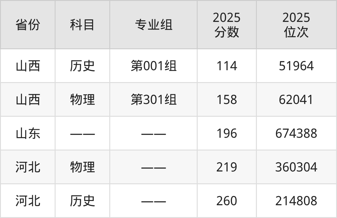 历史类:2025年山西信息职业技术学院省内录取最低分是114分,对应的位次排名是51964名。建议:如果2026年排名超过51964名,那么被该校录取的概率较大。