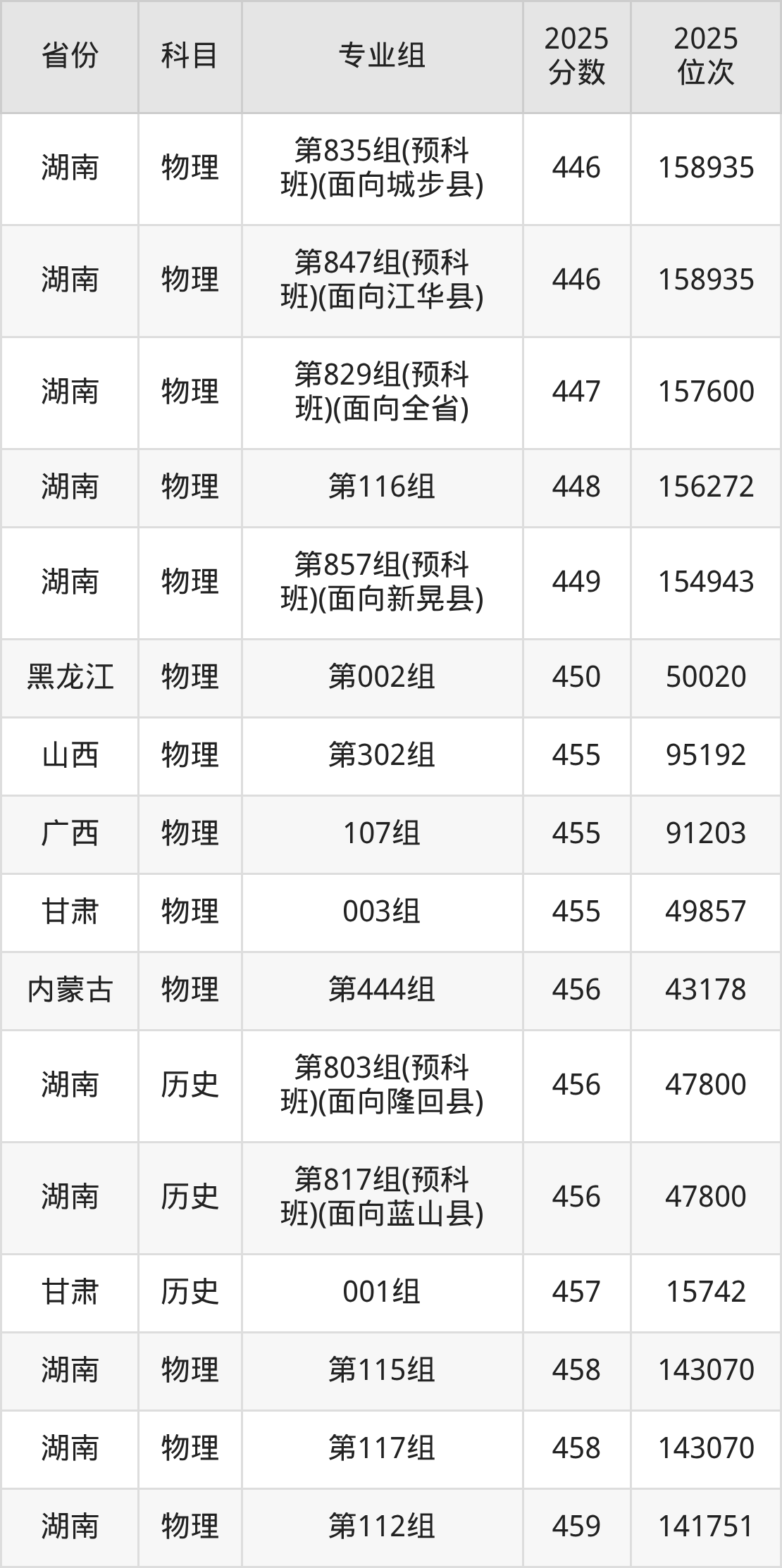 物理类:2025年怀化学院省内录取最低分是407分,对应的位次排名是209093名。建议:如果2026年排名超过209093名,那么被该校录取的概率较大。
