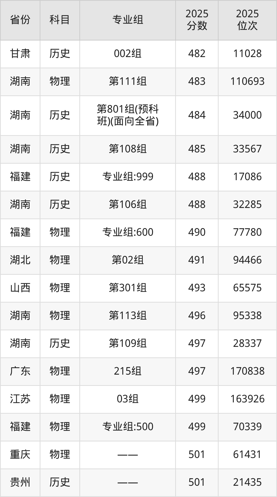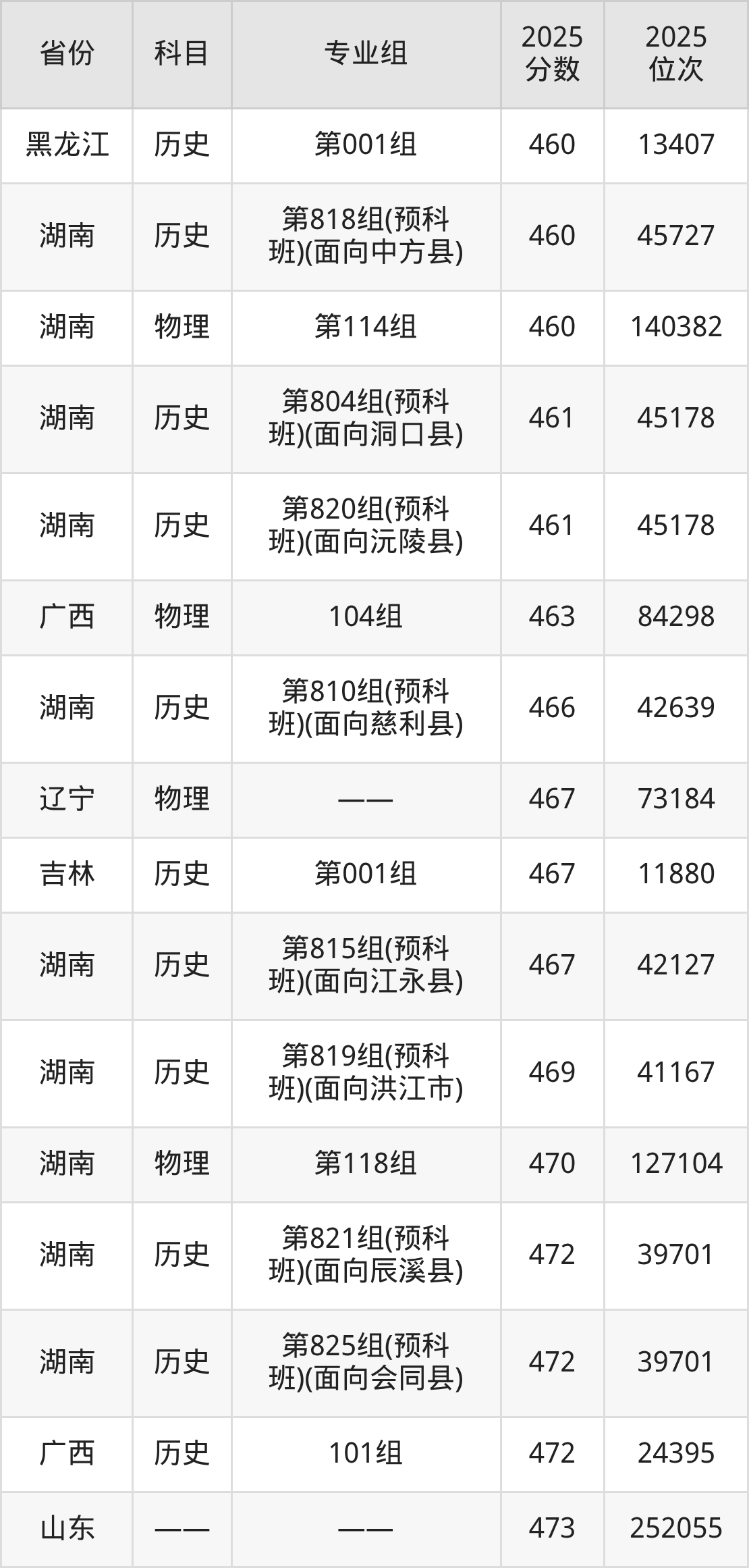 3+3地区:2025年怀化学院录取最低分是473分(山东),对应的位次排名是252055名。