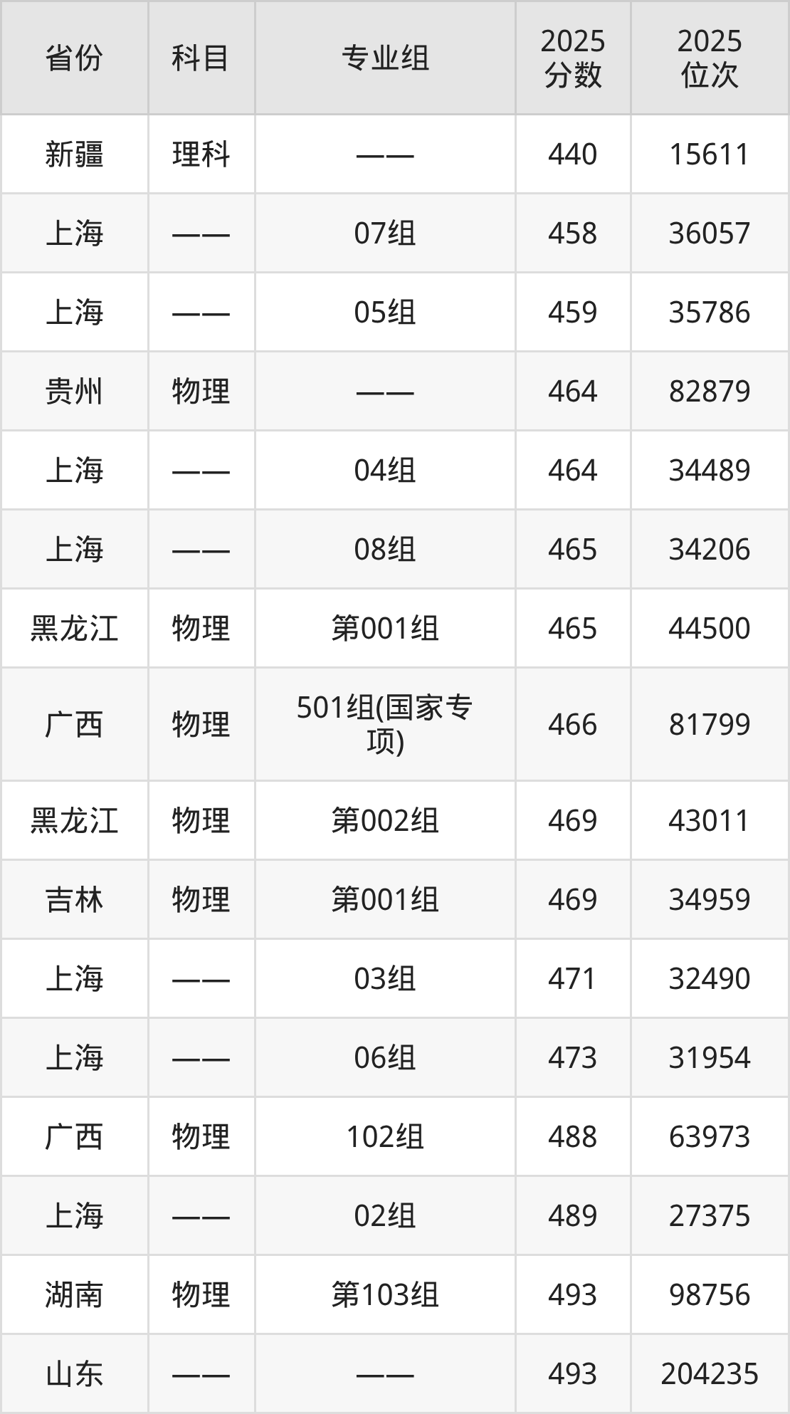 理科:2025年上海健康医学院录取最低分是440分(新疆),对应的位次排名是15611名。