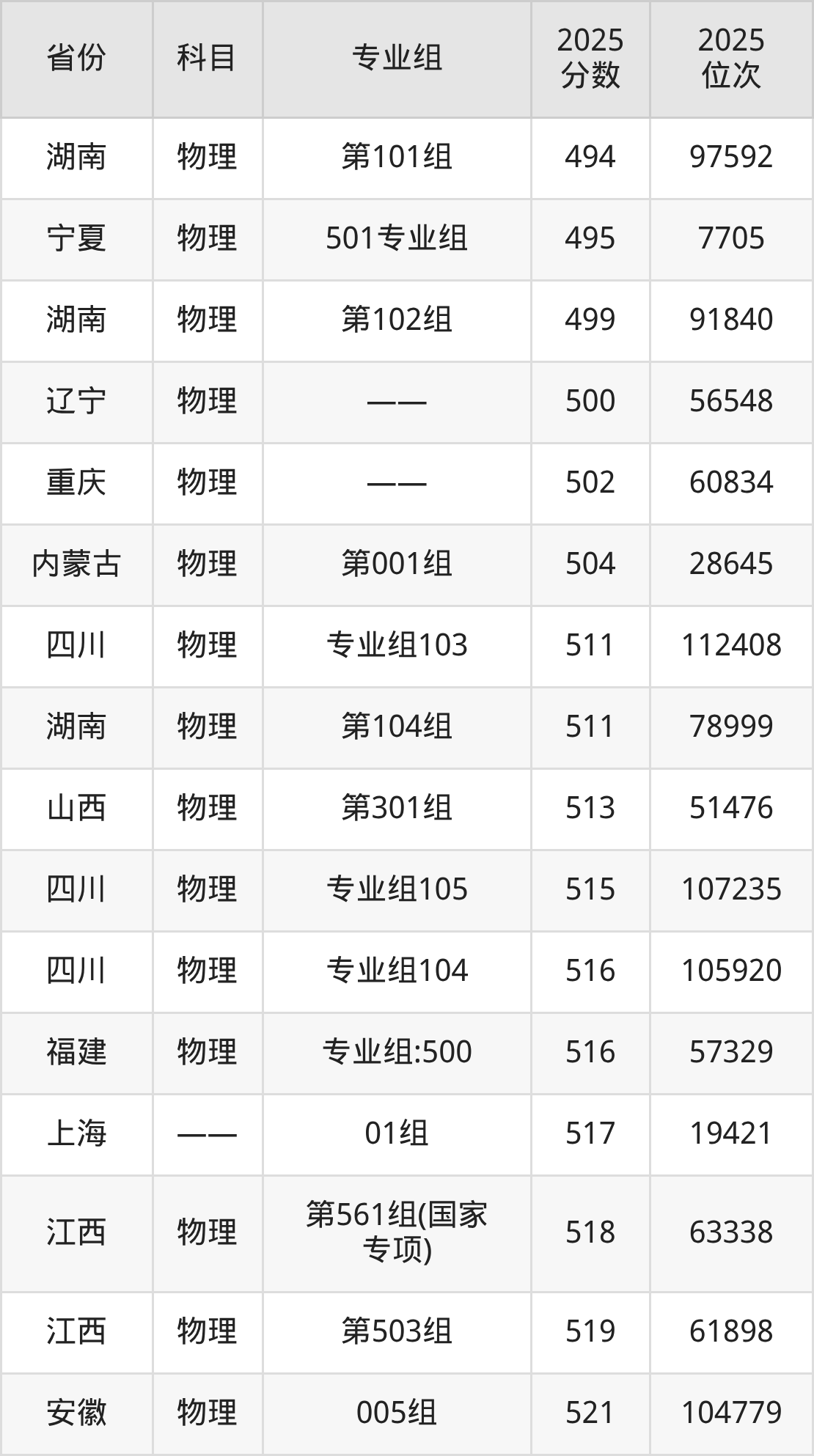 物理类:2025年上海健康医学院录取最低分是464分(贵州),对应的位次排名是82879名。