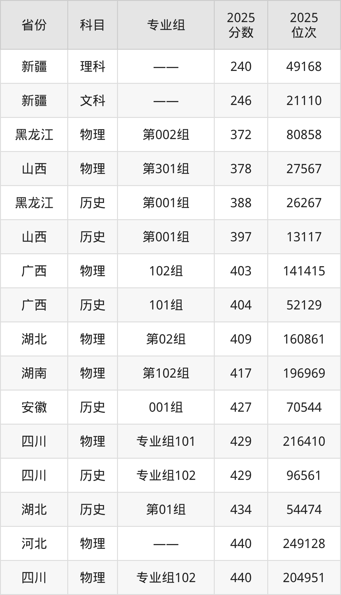 物理类:2025年浙江旅游职业学院录取最低分是372分(黑龙江),对应的位次排名是80858名。