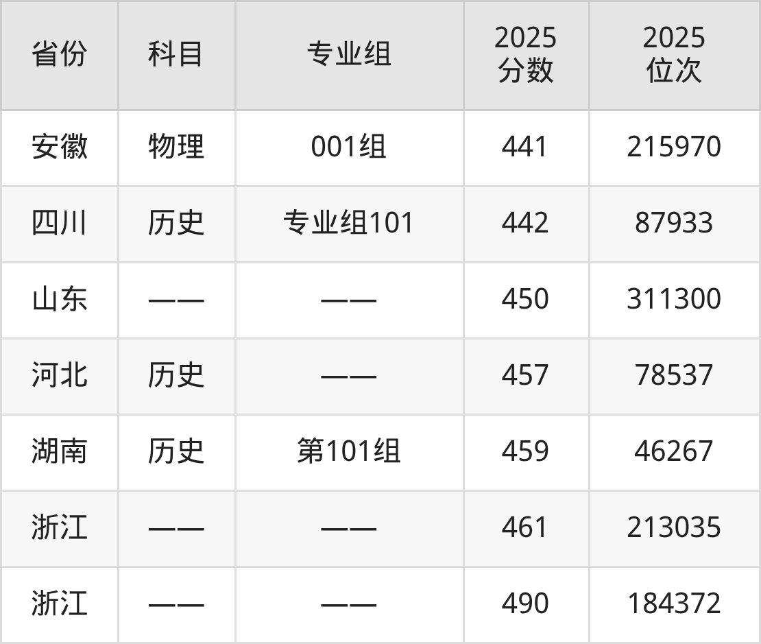 3+3地区:2025年浙江旅游职业学院录取最低分是450分(山东),对应的位次排名是311300名。