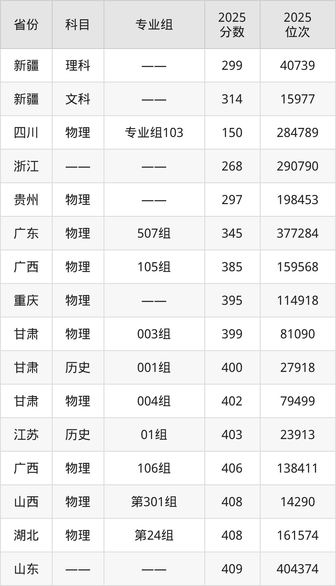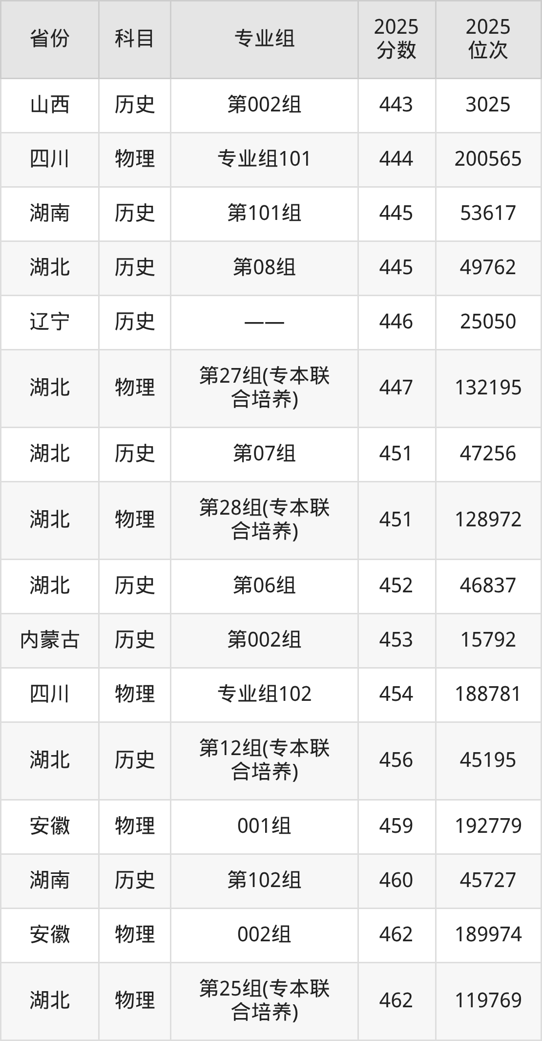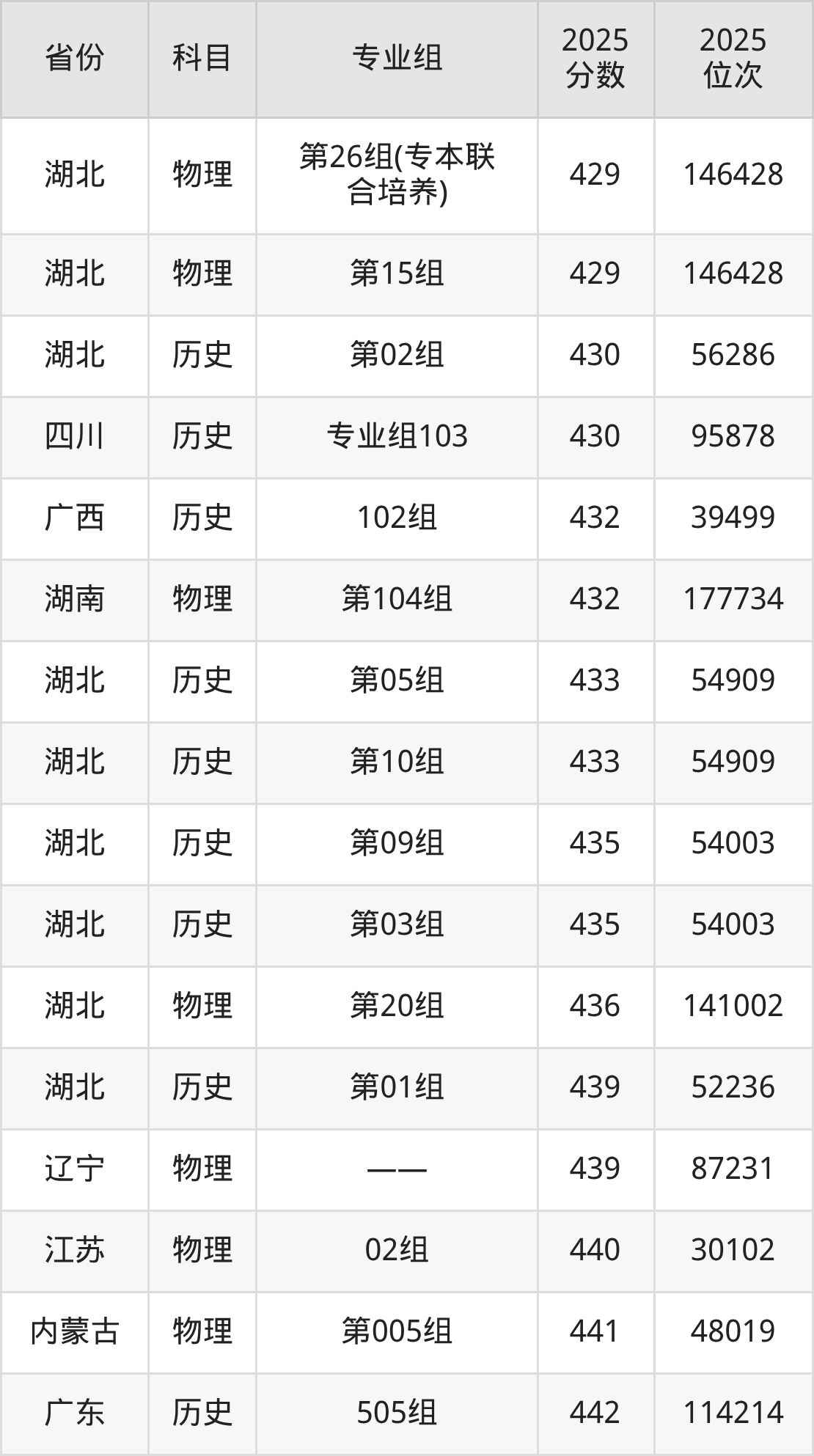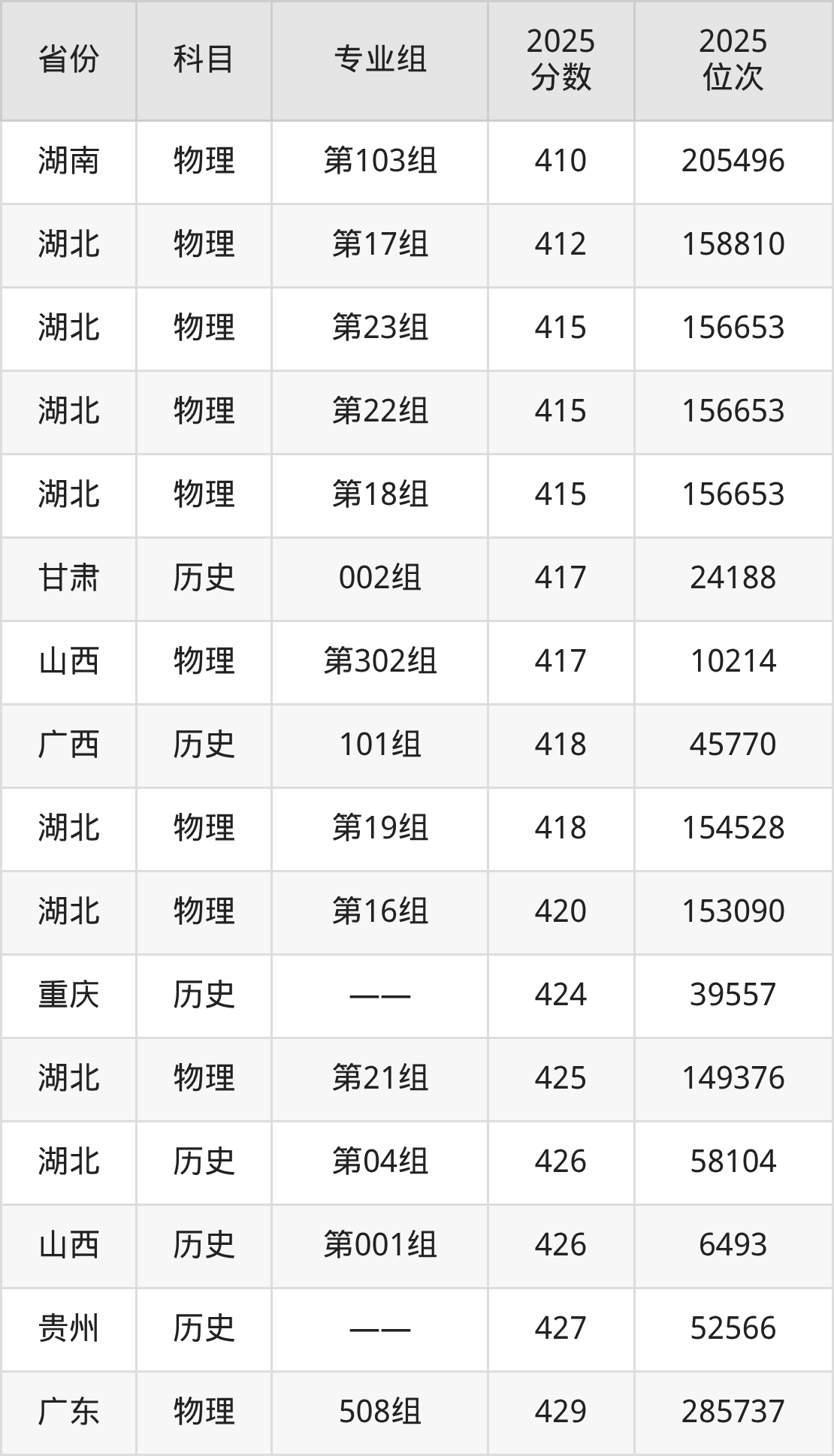 物理类:2025年襄阳职业技术学院录取最低分是150分(四川),对应的位次排名是284789名。