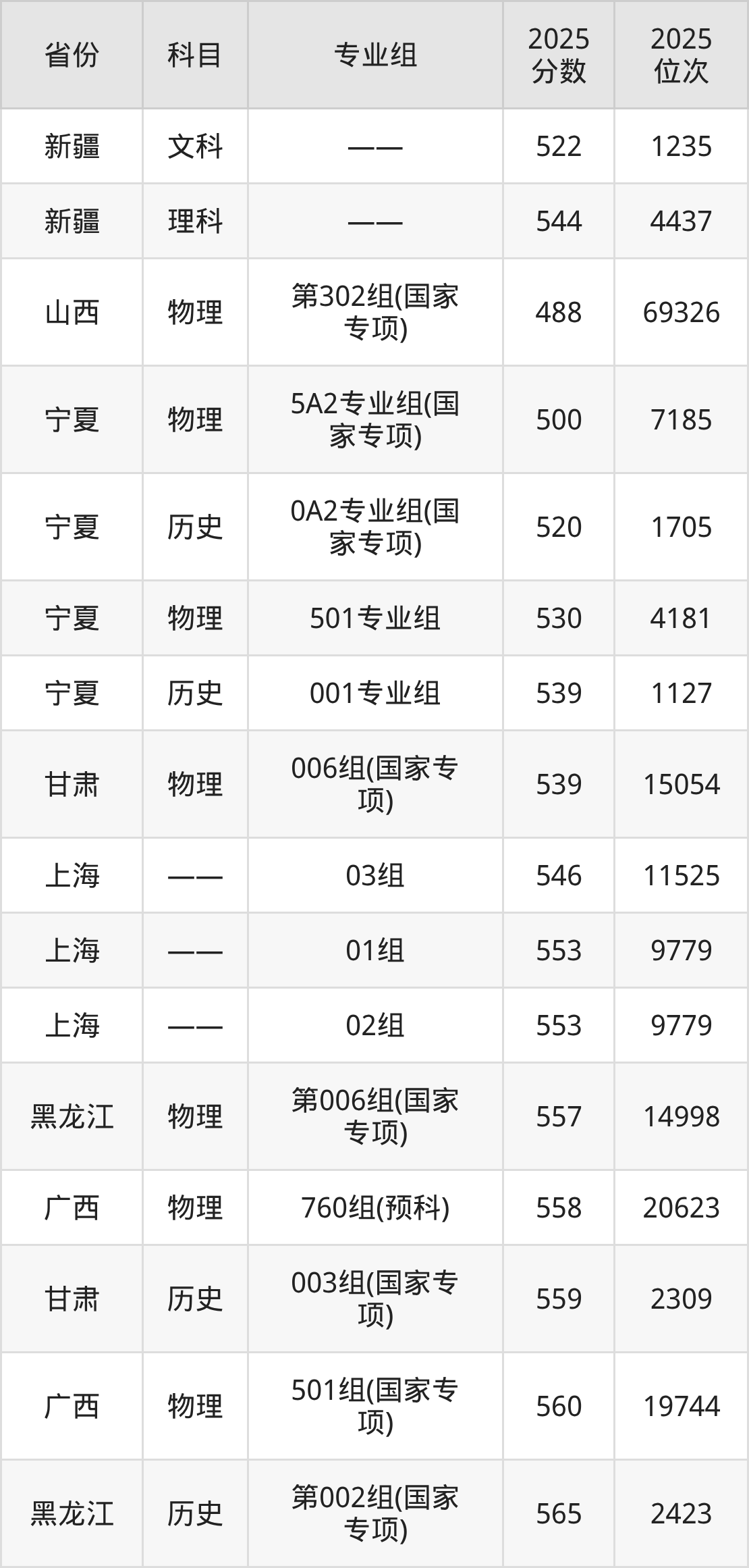 2025年东华大学全国排名第83位,2025年录取分数线最低488分(位次69326)。本文将展示东华大学在各省最低录取分数线汇总,供2026届想要报考该校的考生查阅。