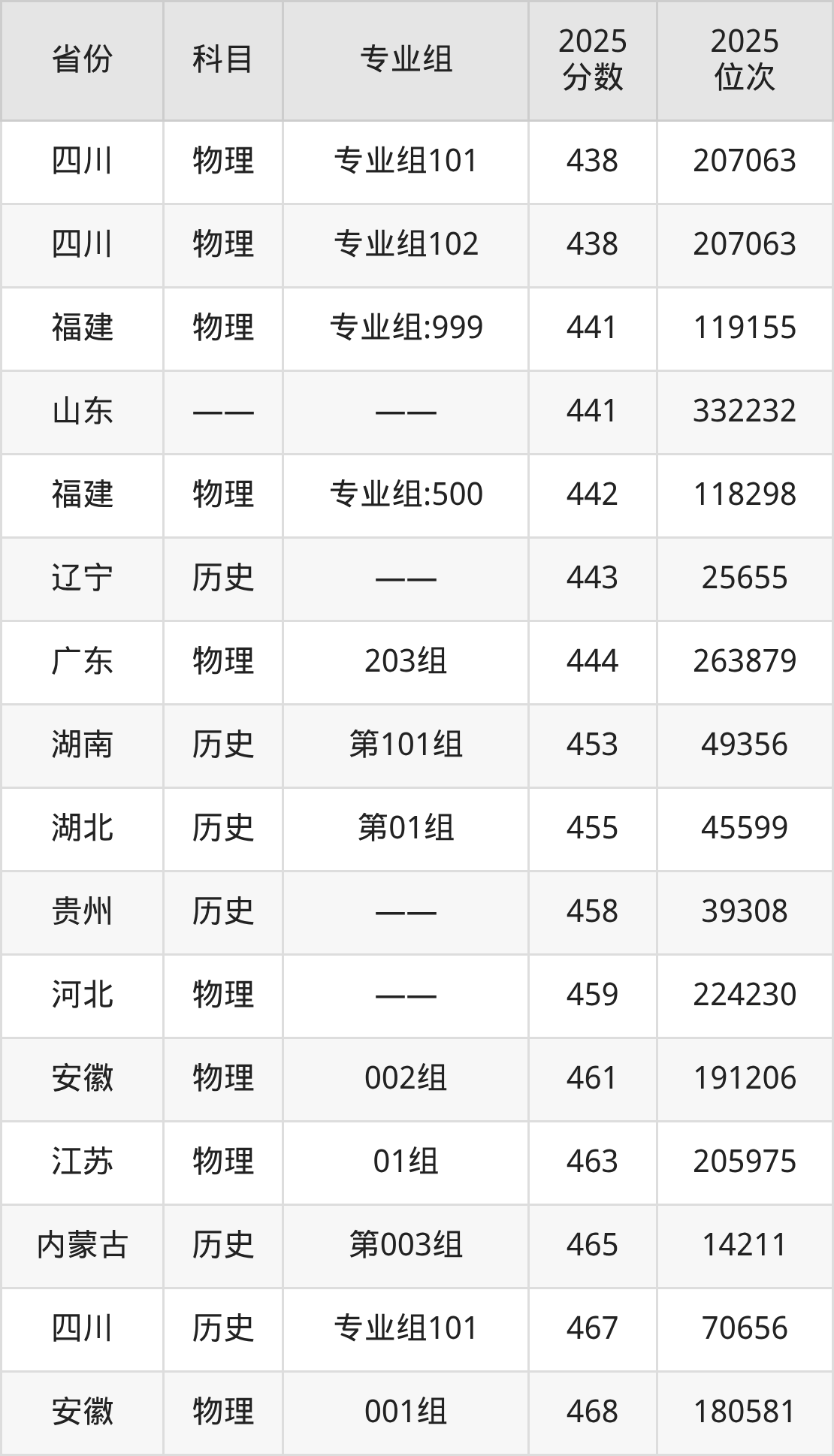 3+3地区:2025年黑龙江东方学院录取最低分是441分(山东),对应的位次排名是332232名。