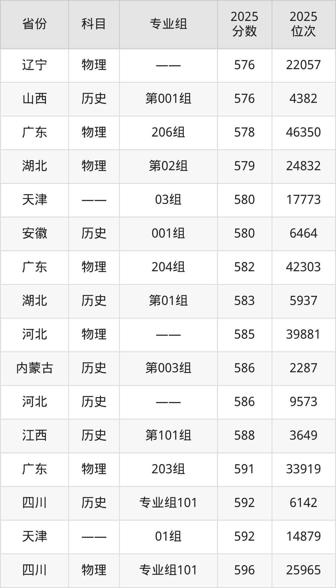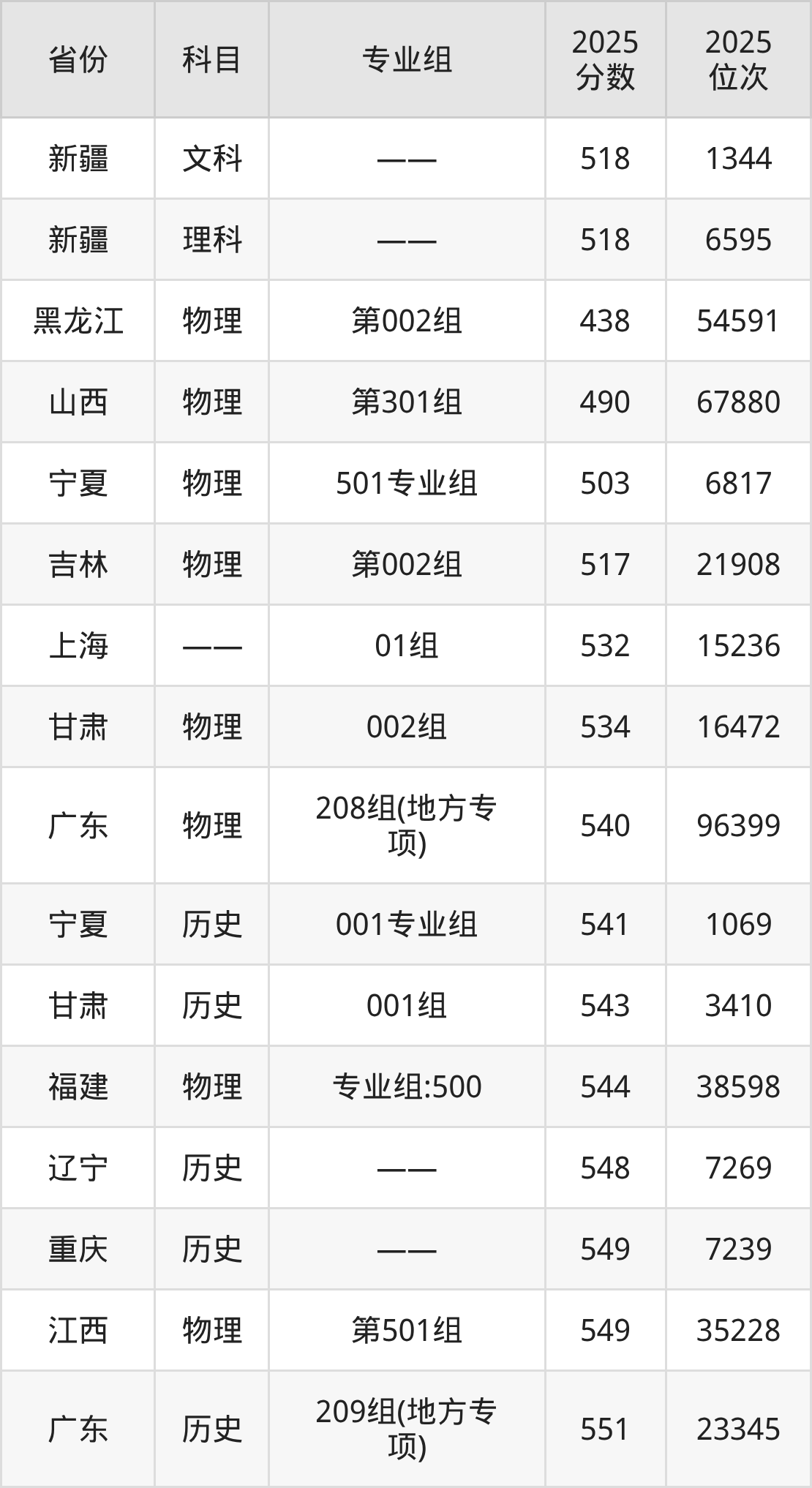 理科:2025年南方医科大学录取最低分是518分(新疆),对应的位次排名是6595名。