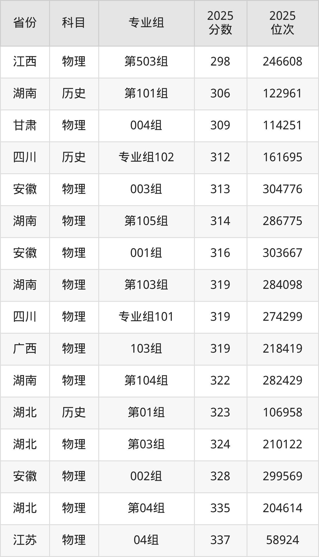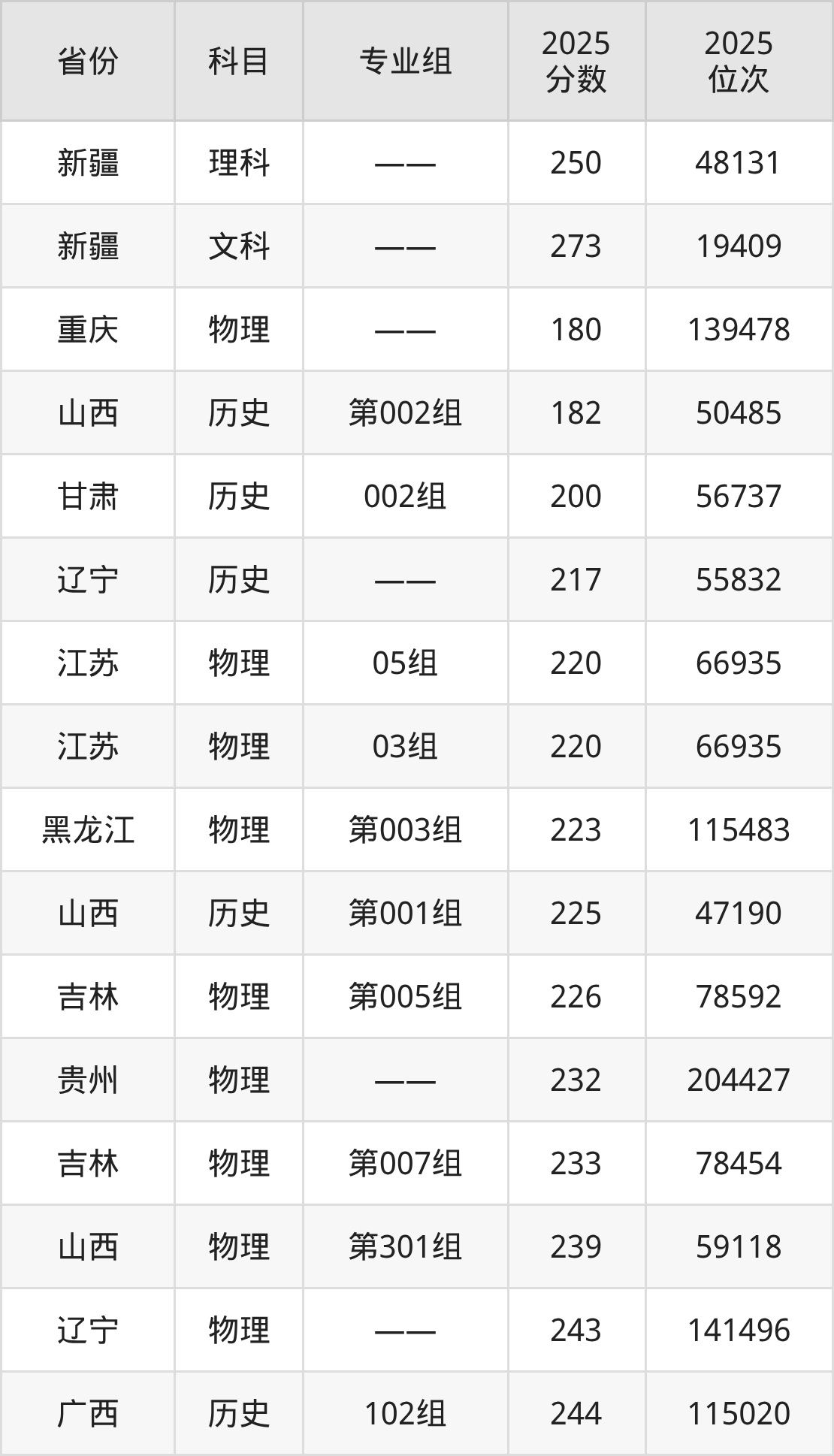 物理类:2025年喀什职业技术学院录取最低分是180分(重庆),对应的位次排名是139478名。
