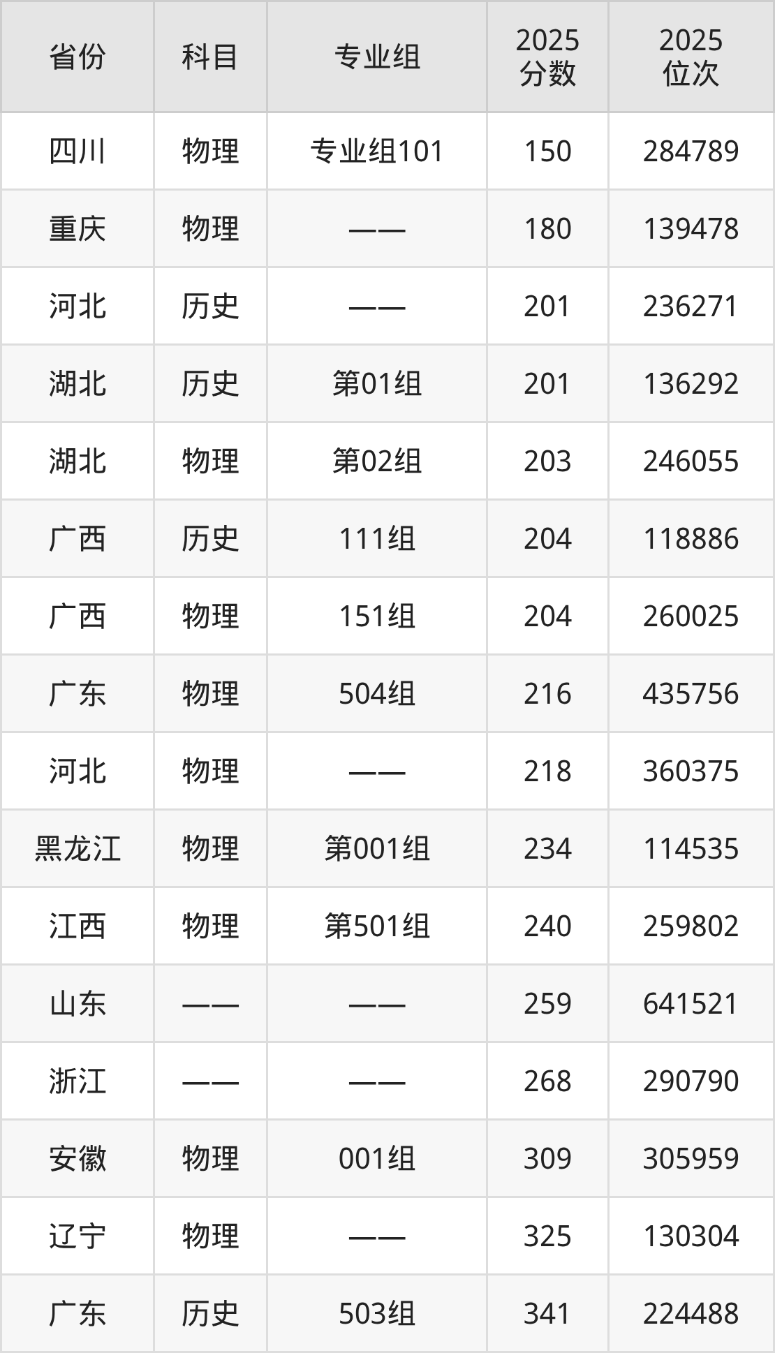 物理类:2025年海南工商职业学院录取最低分是150分(四川),对应的位次排名是284789名。