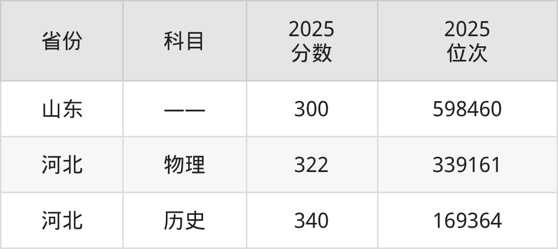 3+3地区:2025年长垣烹饪职业技术学院录取最低分是300分(山东),对应的位次排名是598460名。