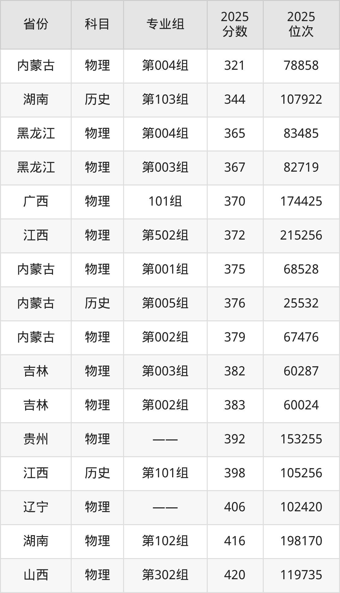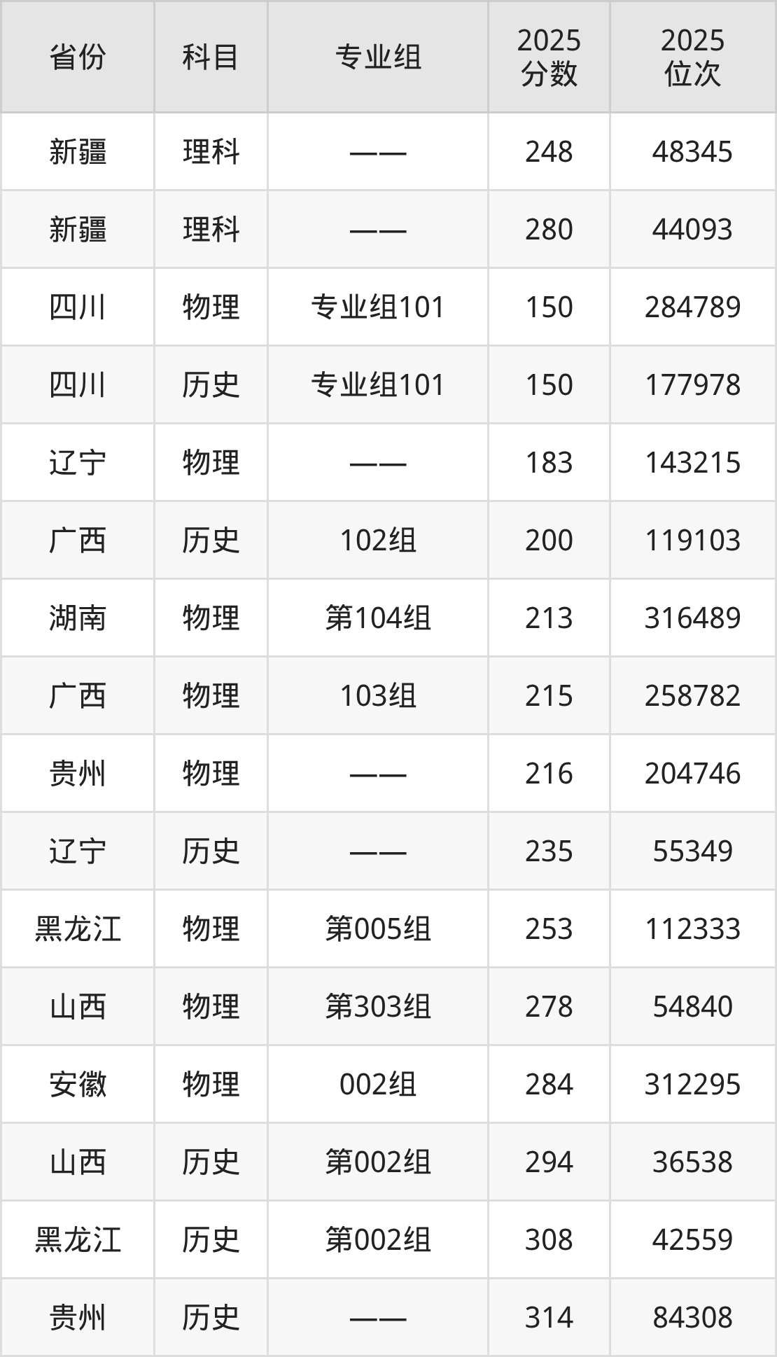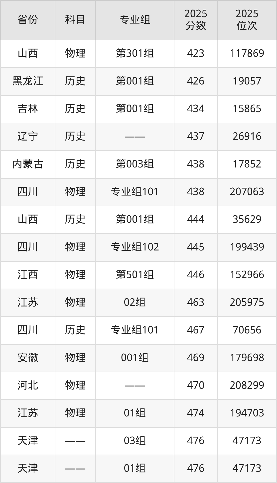 物理类:2025年大连科技学院录取最低分是150分(四川),对应的位次排名是284789名。