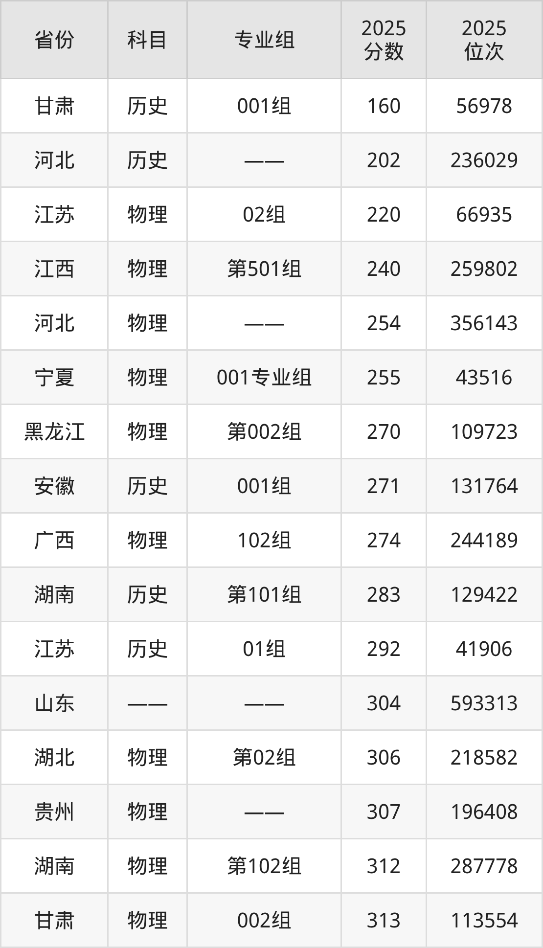 历史类:2025年厦门华天涉外职业技术学院录取最低分是160分(甘肃),对应的位次排名是56978名。