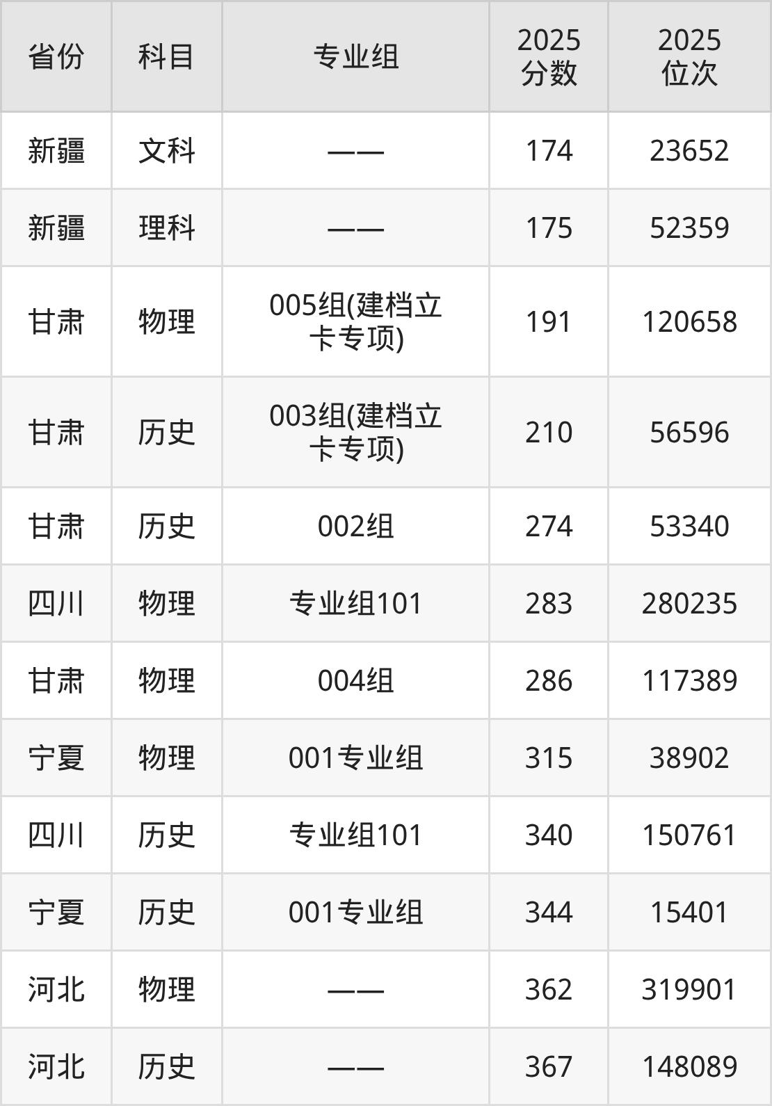 文科:2025年甘肃钢铁职业技术学院录取最低分是174分(新疆),对应的位次排名是23652名。