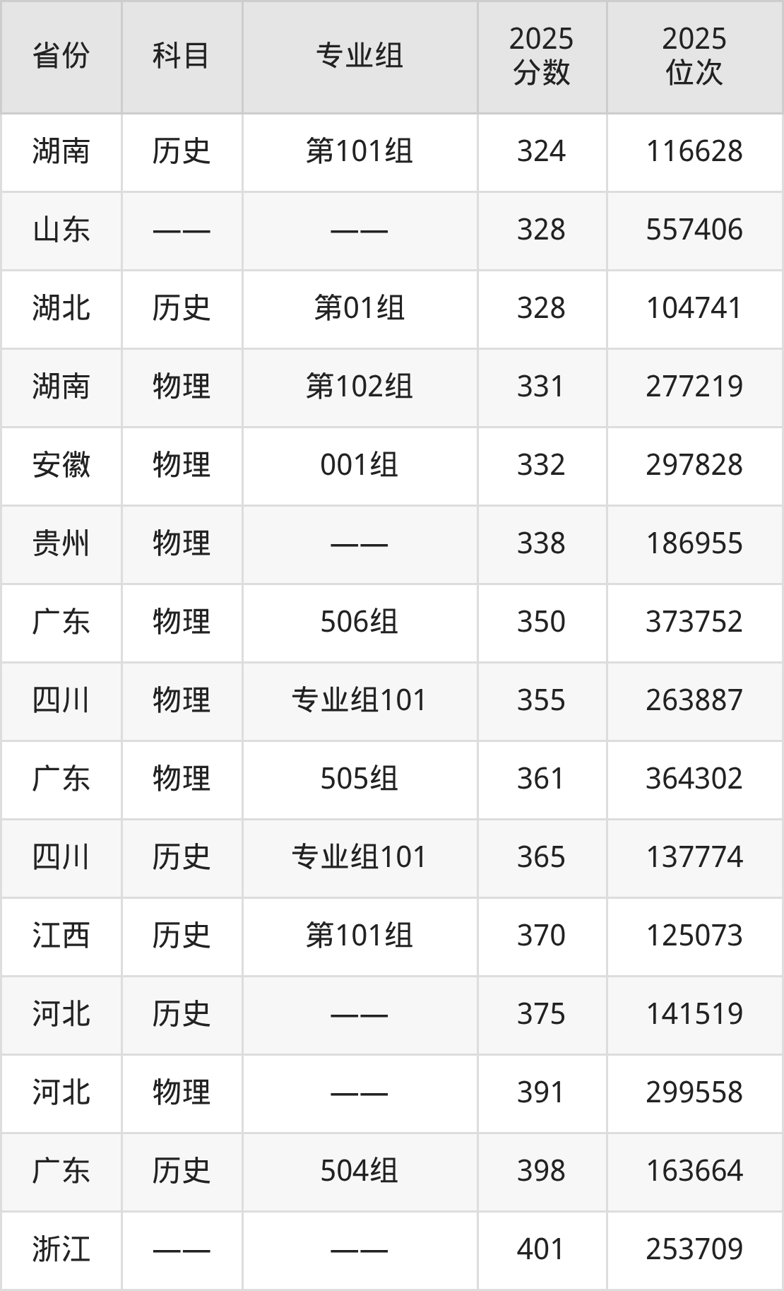 3+3地区:2025年广西物流职业技术学院录取最低分是328分(山东),对应的位次排名是557406名。