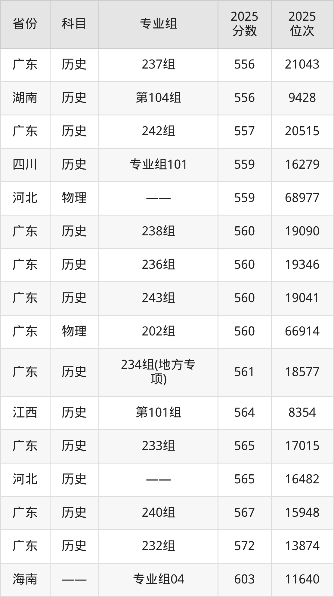 2025年广东技术师范大学全国录取分数线一览表: