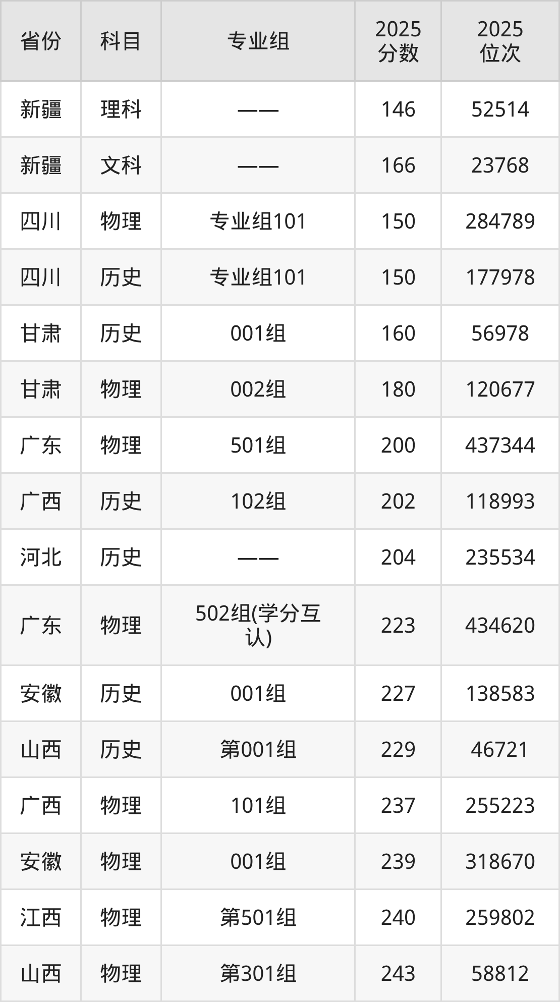物理类:2025年广州华夏职业学院录取最低分是150分(四川),对应的位次排名是284789名。