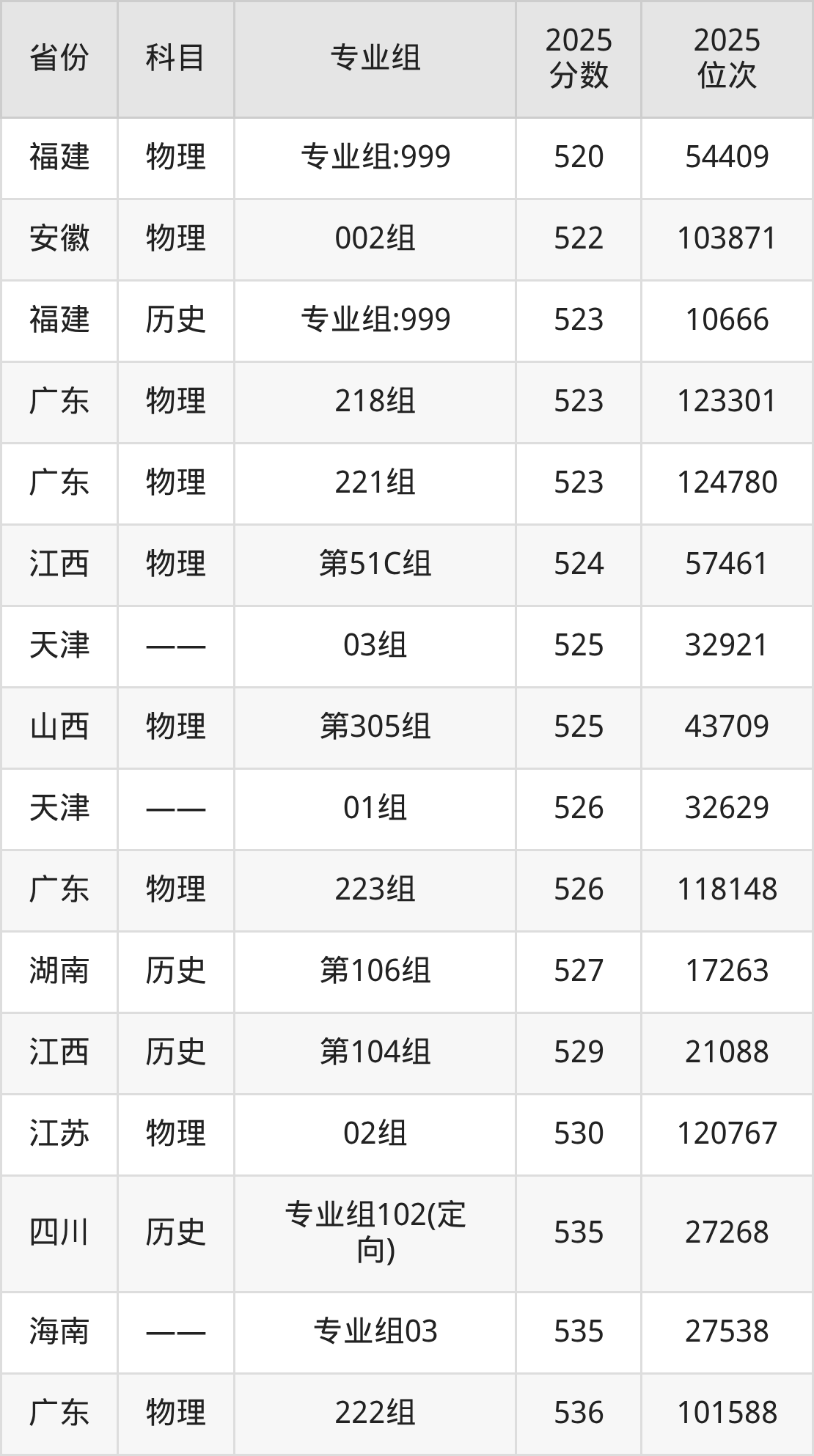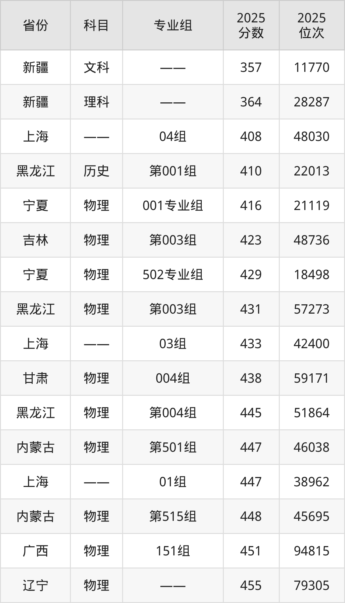 理科:2025年江西科技师范大学录取最低分是364分(新疆),对应的位次排名是28287名。